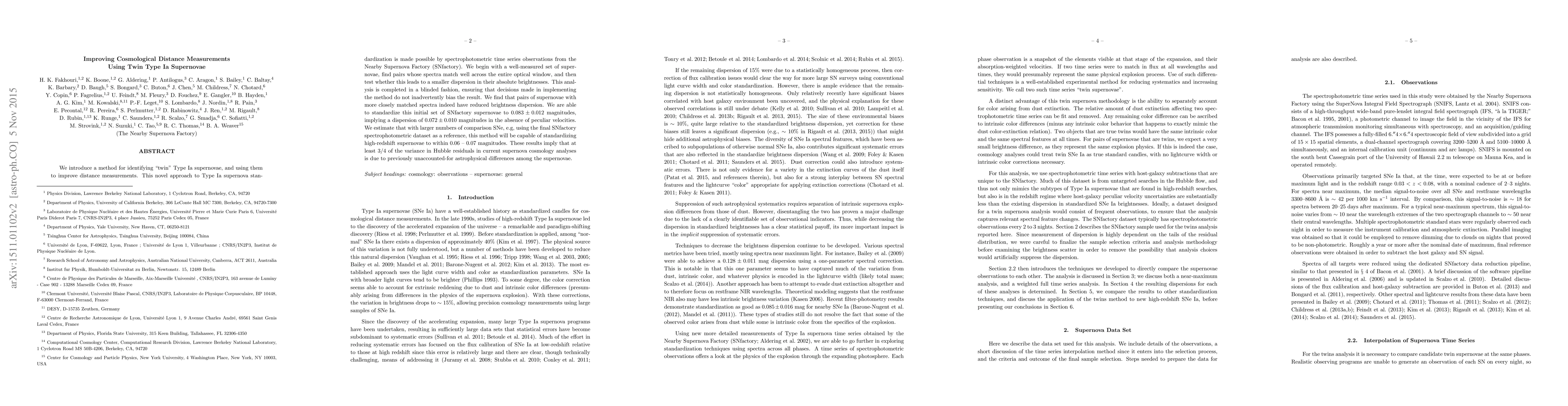 This paper proposes a method to identify "twin" Type Ia supernovae based on closely matched spectra to improve cosmological distance measurements. The study finds that these spectrally similar pairs show reduced brightness dispersion, suggesting potential for high-redshift supernova standardization to within 0.06-0.07 magnitudes.