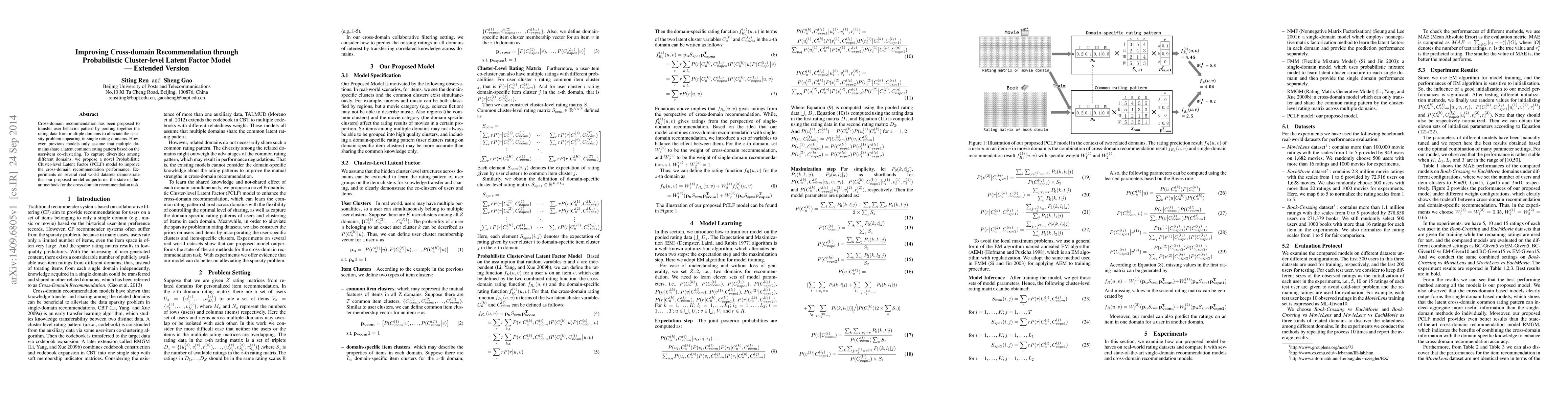 This paper introduces a Probabilistic Cluster-level Latent Factor (PCLF) model to enhance cross-domain recommendation by capturing domain-specific diversities, outperforming existing methods in experiments on real datasets. The model addresses the sparsity issue by leveraging pooled rating data across multiple domains.