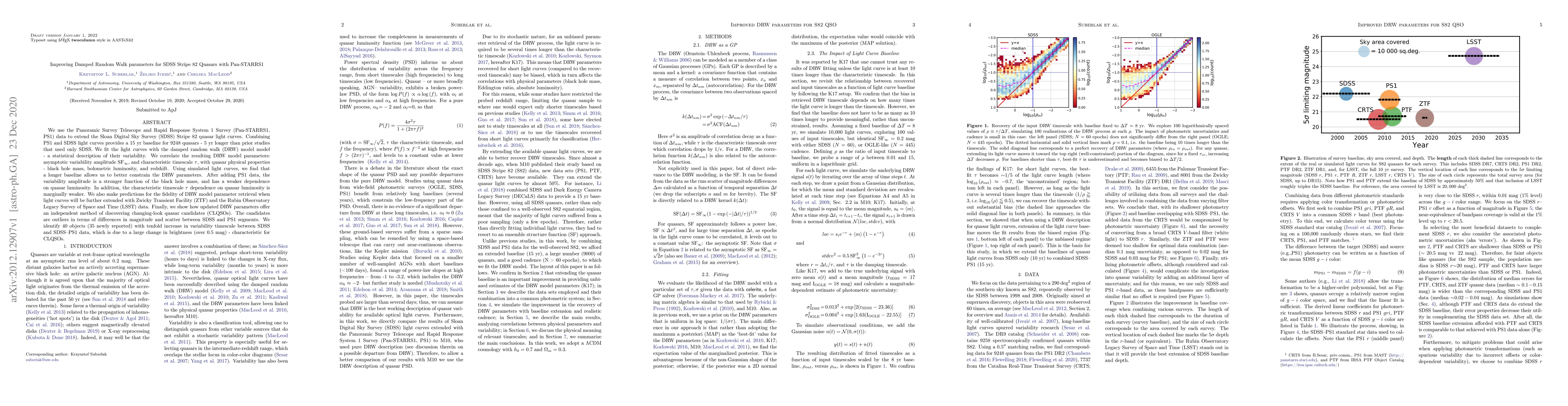 This paper extends SDSS Stripe 82 quasar light curves using Pan-STARRS1 data, providing a 15-year baseline for variability analysis. The study fits the combined light curves with a damped random walk model, correlating its parameters with quasar properties, and finds improved constraints on these parameters due to the longer baseline.