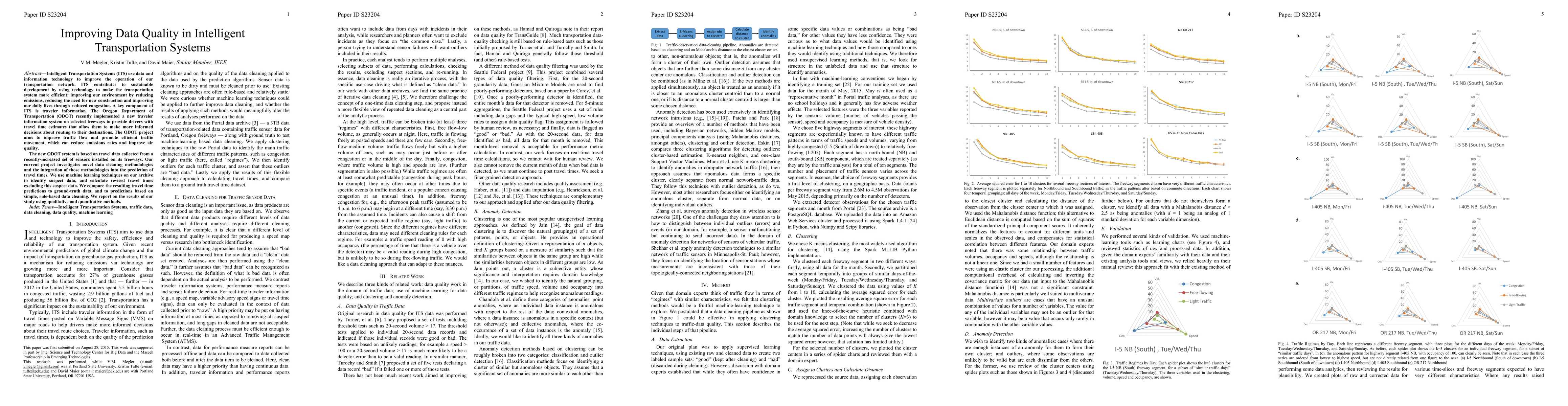 Intelligent Transportation Systems (ITS) use data and information technology to improve the operation of our transportation network. ITS contributes to sustainable development by using technology to make the transportation system more efficient; improving our environment by reducing emissions, reducing the need for new construction and improving our daily lives through reduced congestion. A key component of ITS is traveler information. The Oregon Department of Transportation (ODOT) recently implemented a new traveler information system on selected freeways to provide drivers with travel time estimates that allow them to make more informed decisions about routing to their destinations. The ODOT project aims to improve traffic flow and promote efficient traffic movement, which can reduce emissions rates and improve air quality. The new ODOT system is based on travel data collected from a recently-increased set of sensors installed on its freeways. Our current project investigates novel data cleaning methodologies and the integration of those methodologies into the prediction of travel times. We use machine learning techniques on our archive to identify suspect data, and calculate revised travel times excluding this suspect data. We compare the resulting travel time predictions to ground-truth data, and to predictions based on simple, rule-based data cleaning. We report on the results of our study using qualitative and quantitative methods.