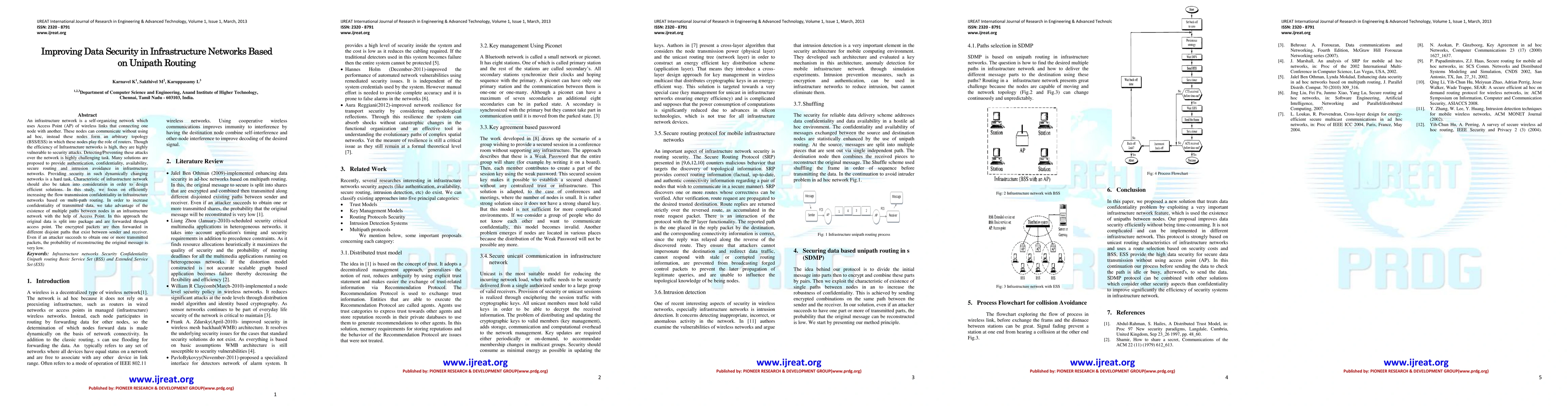 This paper proposes a method to enhance data security in infrastructure networks by employing multi-path routing through Access Points. It splits original data into encrypted packets and forwards them via disjoint paths, significantly reducing the risk of reconstructing the original message even if some packets are intercepted.