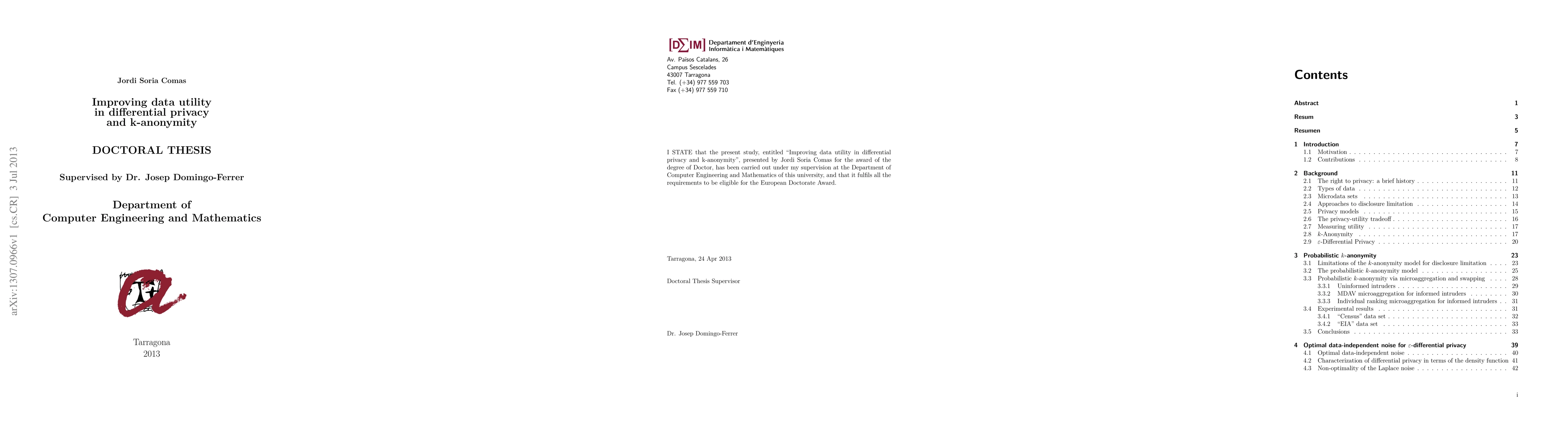 This paper aims to enhance data utility in k-anonymity and differential privacy models. It proposes a relaxed k-anonymity approach to address attribute disclosure and quasi-identifier issues, and introduces optimal noise mechanisms for differential privacy that require less noise for the same privacy guarantees.