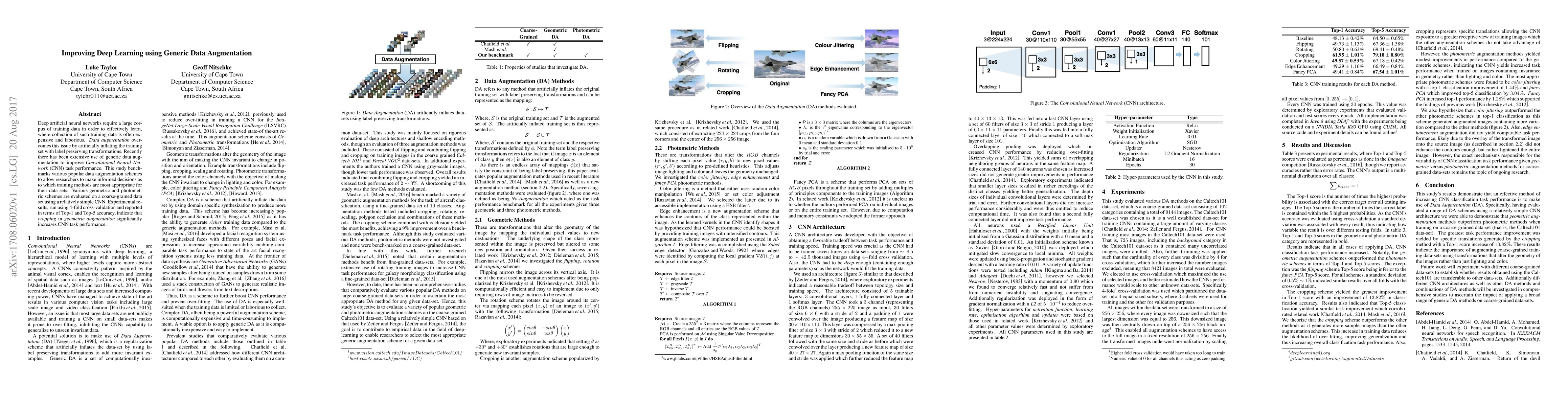 A study evaluates various data augmentation schemes to improve CNN task performance, finding that cropping in geometric augmentation significantly increases accuracy. The results suggest that the right training method can lead to better performance on certain datasets.