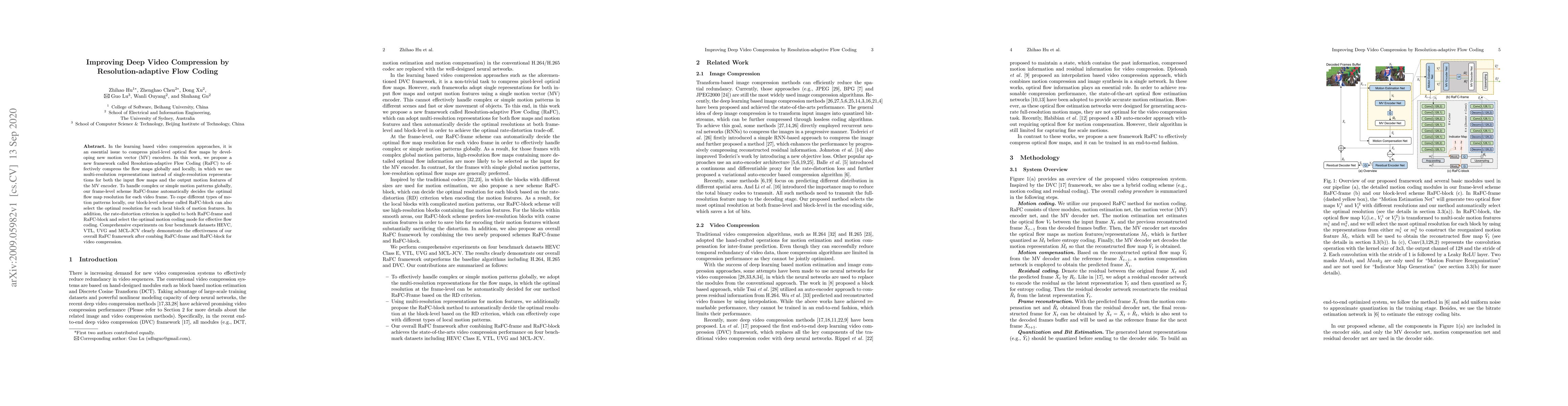 This paper proposes a Resolution-adaptive Flow Coding (RaFC) framework to enhance deep video compression by using multi-resolution representations for both global and local flow map compression. The RaFC-frame and RaFC-block schemes adaptively select optimal resolutions for entire frames and local blocks, respectively, improving compression efficiency and performance.