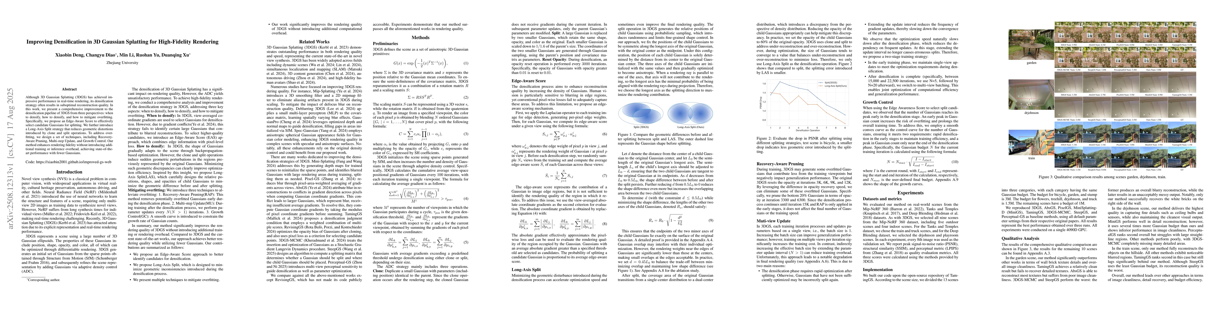 Although 3D Gaussian Splatting (3DGS) has achieved impressive performance in real-time rendering, its densification strategy often results in suboptimal reconstruction quality. In this work, we present a comprehensive improvement to the densification pipeline of 3DGS from three perspectives: when to densify, how to densify, and how to mitigate overfitting. Specifically, we propose an Edge-Aware Score to effectively select candidate Gaussians for splitting. We further introduce a Long-Axis Split strategy that reduces geometric distortions introduced by clone and split operations. To address overfitting, we design a set of techniques, including Recovery-Aware Pruning, Multi-step Update, and Growth Control. Our method enhances rendering fidelity without introducing additional training or inference overhead, achieving state-of-the-art performance with fewer Gaussians.