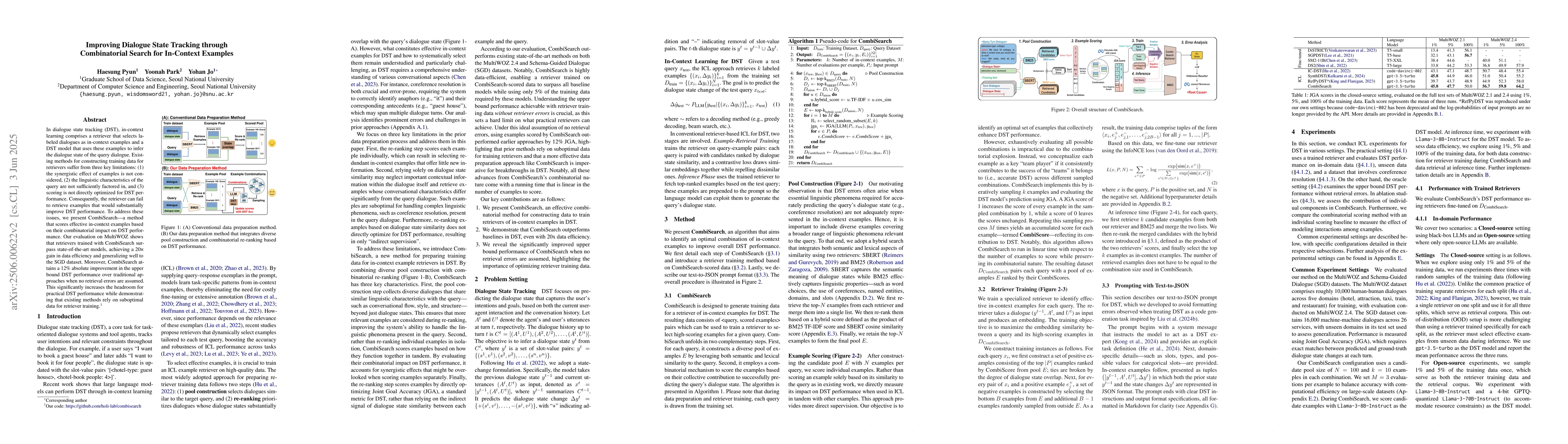The research introduces CombiSearch, a method that scores in-context examples based on their combinatorial impact on DST performance, addressing limitations in existing retriever training methods for dialogue state tracking.