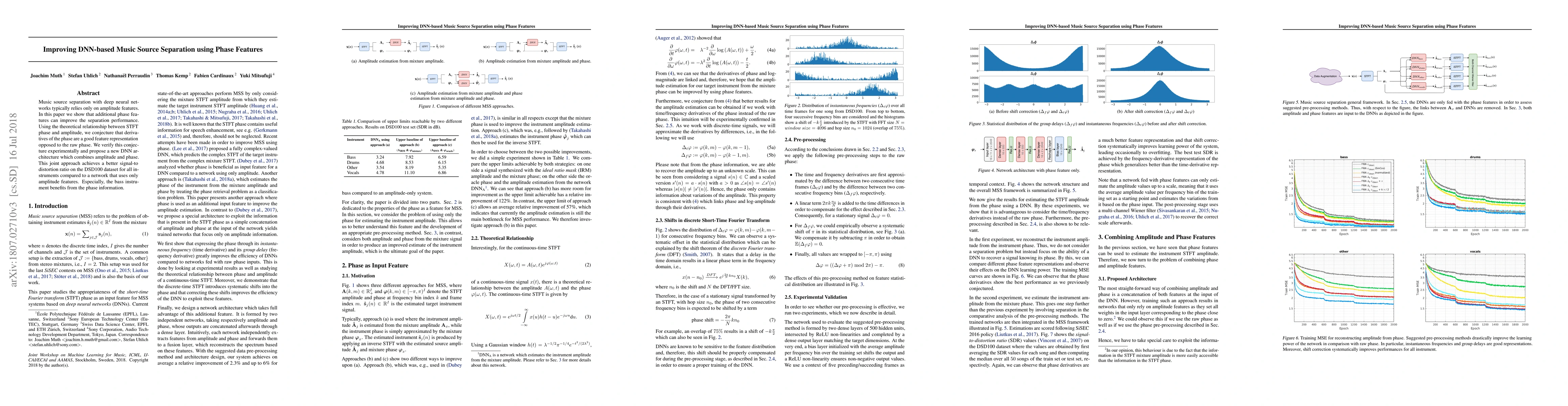 Using phase features in addition to amplitude features improves music source separation performance with deep neural networks, particularly benefiting bass instruments.