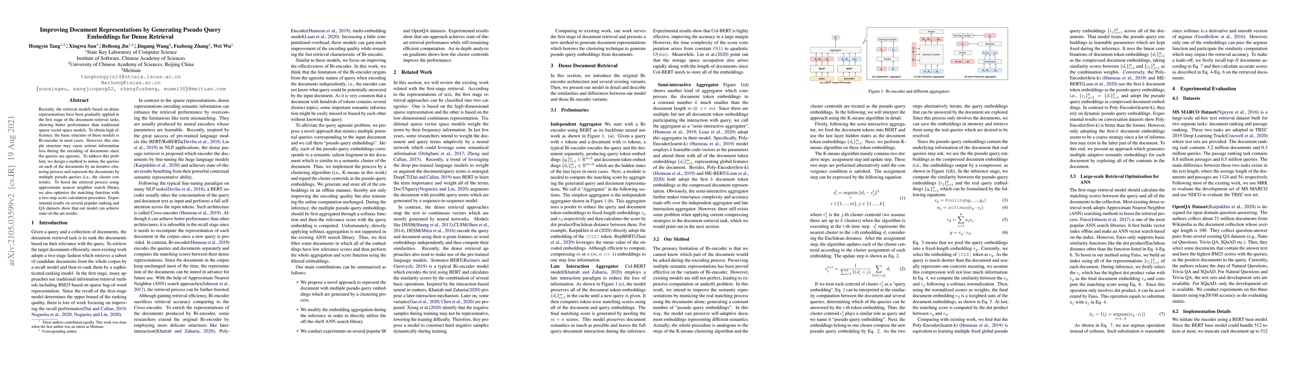 This research introduces a method to enhance document representation for dense retrieval by generating pseudo query embeddings. It addresses information loss in Bi-encoder models by iteratively clustering documents into pseudo query (centroid) representations. The approach also optimizes matching functions with a two-step scoring process, demonstrating state-of-the-art performance on various ranking and QA datasets.