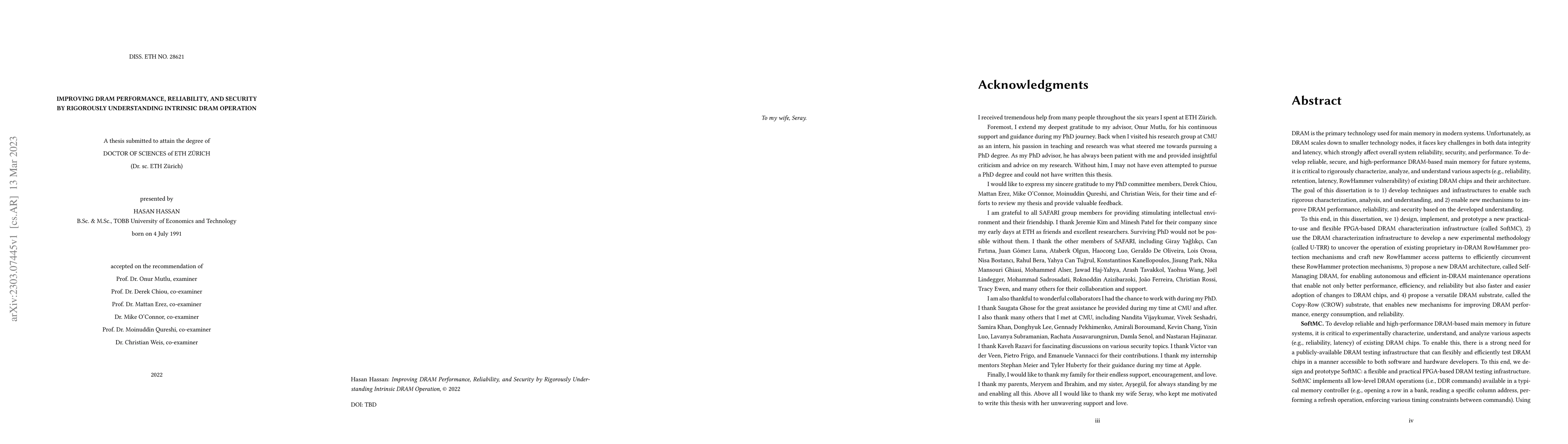 This paper aims to enhance DRAM performance, reliability, and security by deeply understanding its intrinsic operations. It develops an FPGA-based characterization infrastructure, uncovers proprietary RowHammer protection mechanisms, proposes a new DRAM architecture for autonomous maintenance, and introduces a versatile DRAM substrate to improve performance and reliability.
