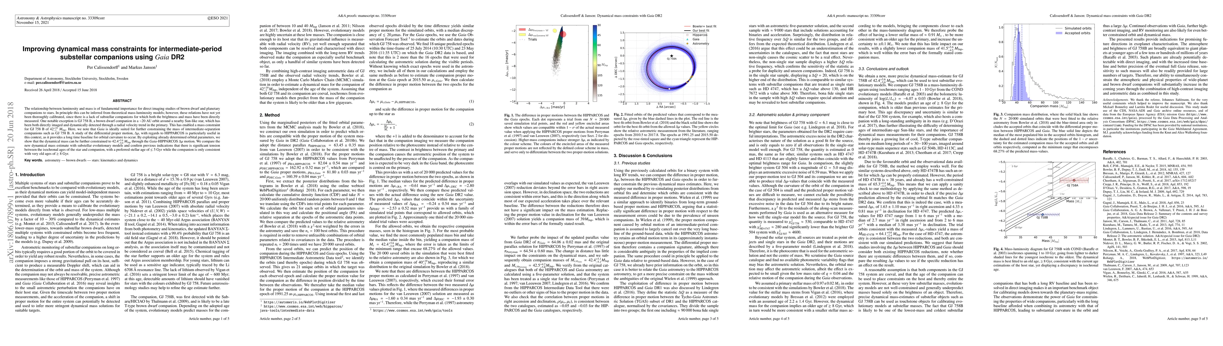 This paper uses Gaia DR2 data to refine mass constraints for the substellar companion GJ 758 B, improving its dynamical mass to $42.4^{+5.6}_{-5.0}\, M_{\rm Jup}$ through differential proper motion analysis. It also highlights a significant age discrepancy between the star and its companion, suggesting the companion is much older than previously thought.