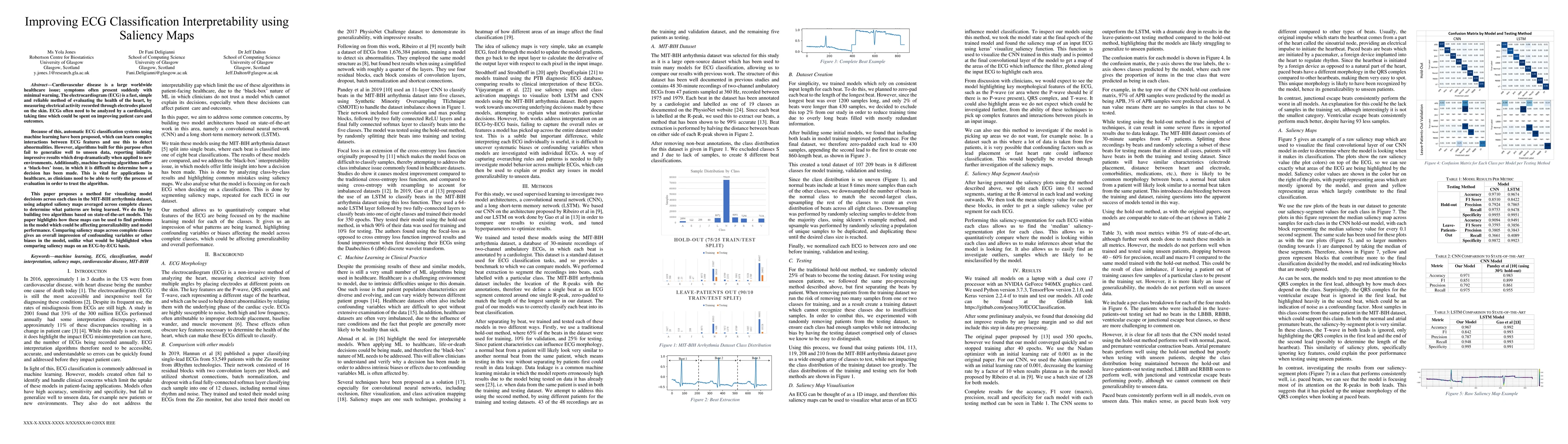 This paper proposes a method to improve ECG classification interpretability using saliency maps, highlighting how it can help identify confounding variables and biases in machine learning models, ultimately leading to better generalizability and model performance.