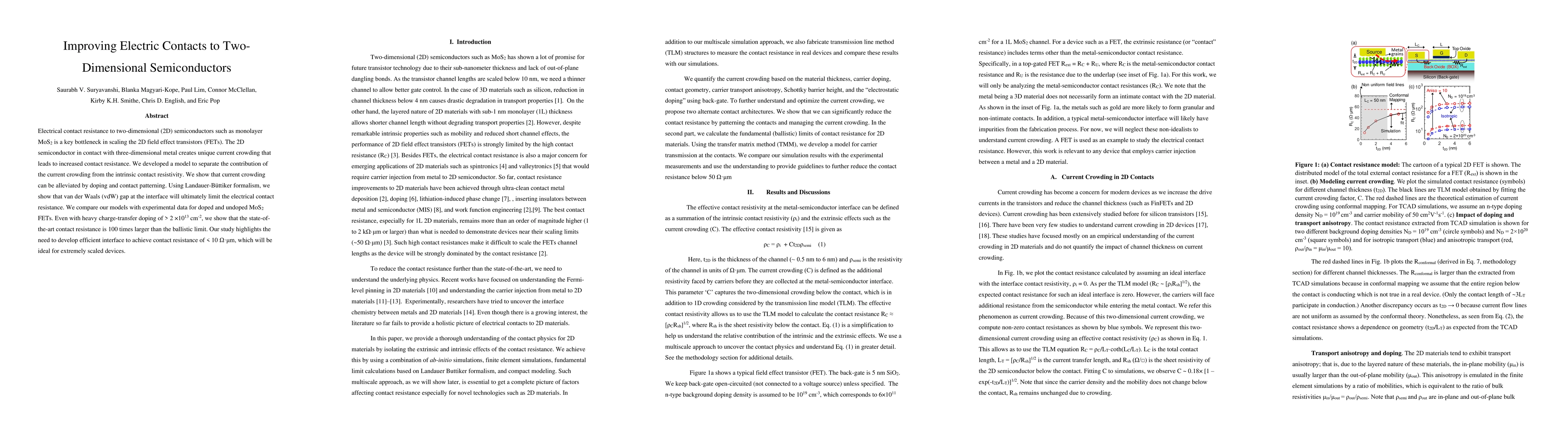 Researchers found that contact resistance to two-dimensional semiconductors like MoS2 is 100 times larger than expected, highlighting the need for efficient interfaces to achieve low resistance for scaled devices.