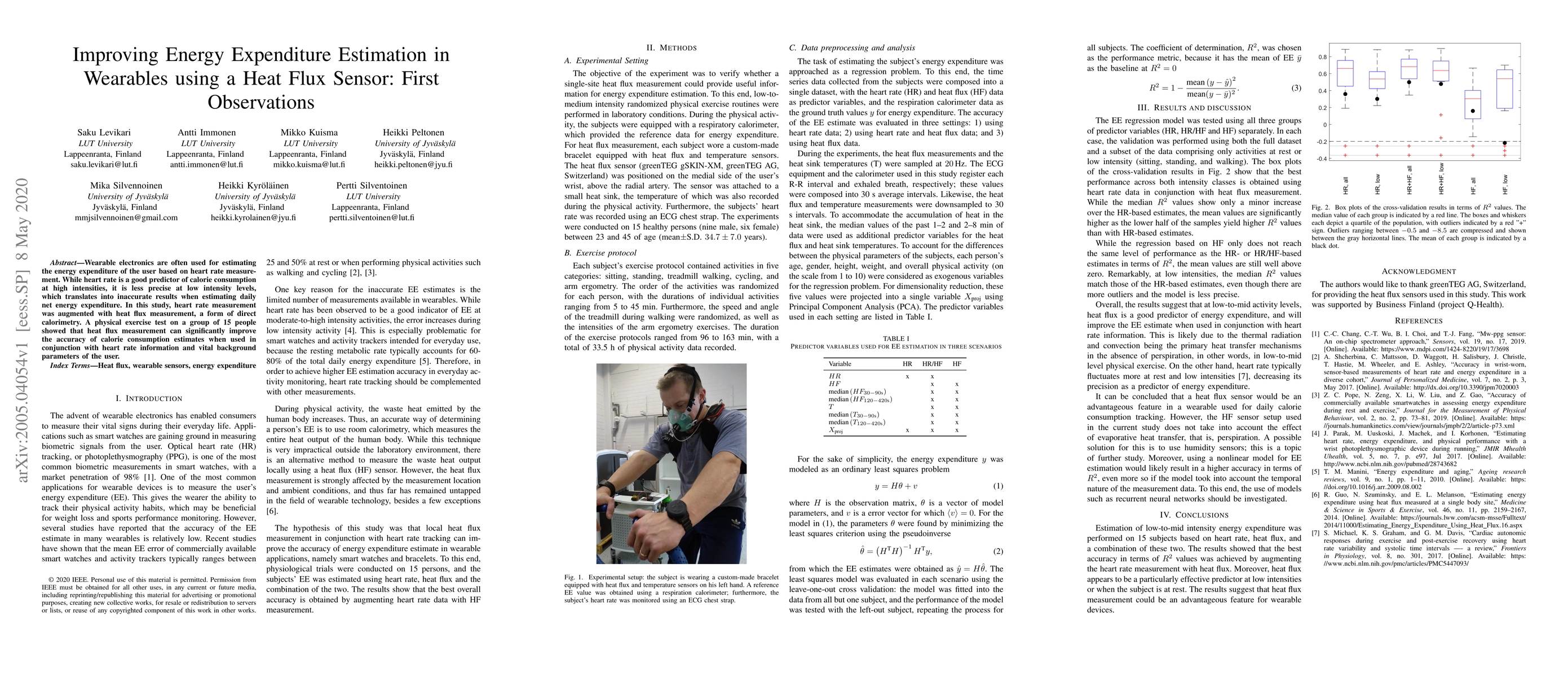 This study enhances energy expenditure estimation in wearables by integrating heat flux sensor data with heart rate measurements. Initial results from a physical exercise test on 15 participants indicate that combining heat flux with heart rate significantly improves accuracy, especially at low intensity levels.