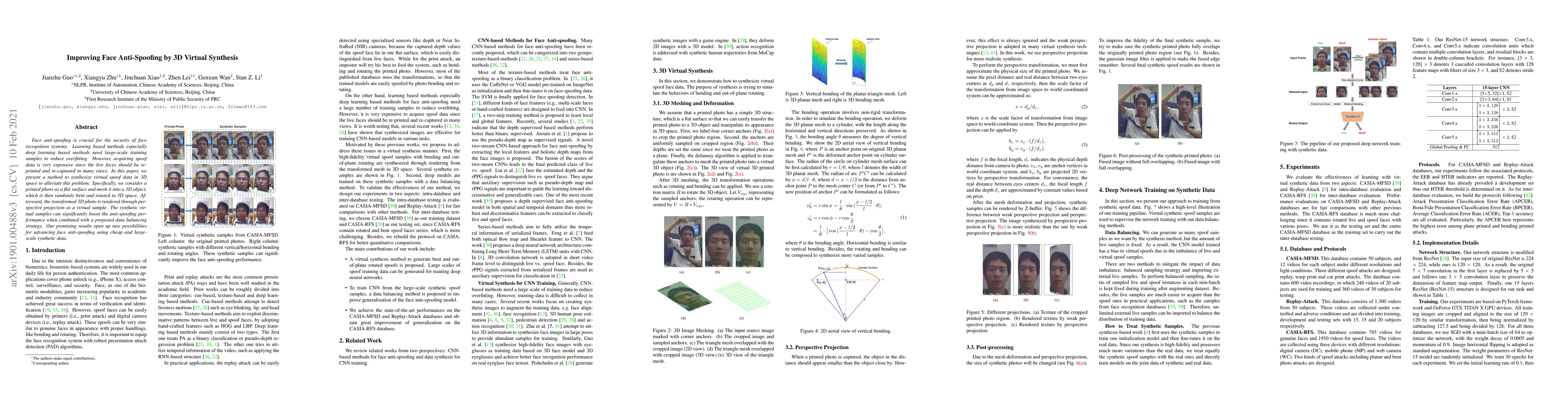 This paper proposes a method to synthesize 3D virtual spoof data to enhance face anti-spoofing, addressing the challenge of acquiring expensive real spoof samples. The method involves transforming 3D meshed photos through random bending and rotation, followed by perspective projection to create virtual samples, which improve anti-spoofing performance when used with a data balancing strategy.