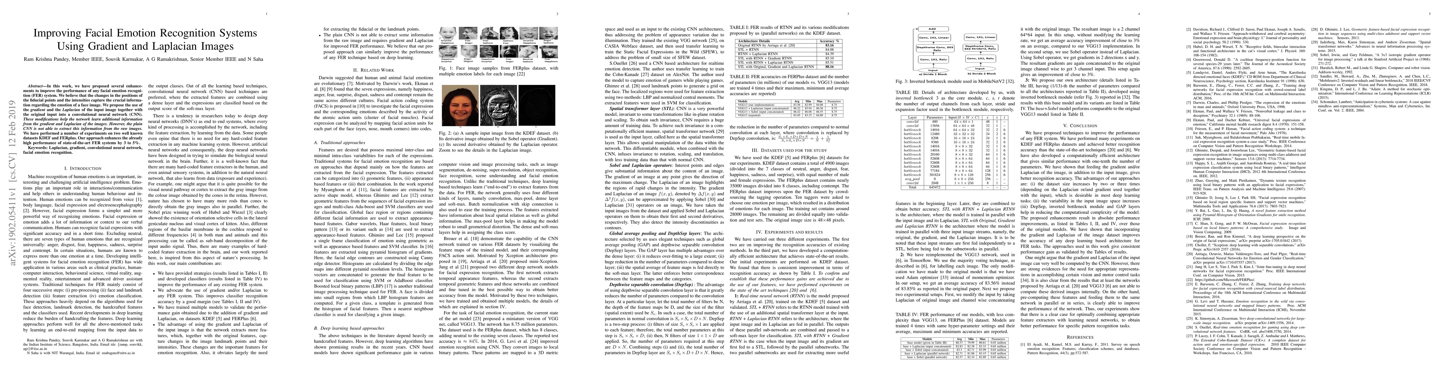 In this work, we have proposed several enhancements to improve the performance of any facial emotion recognition (FER) system. We believe that the changes in the positions of the fiducial points and the intensities capture the crucial information regarding the emotion of a face image. We propose the use of the gradient and the Laplacian of the input image together with the original input into a convolutional neural network (CNN). These modifications help the network learn additional information from the gradient and Laplacian of the images. However, the plain CNN is not able to extract this information from the raw images. We have performed a number of experiments on two well known datasets KDEF and FERplus. Our approach enhances the already high performance of state-of-the-art FER systems by 3 to 5%.