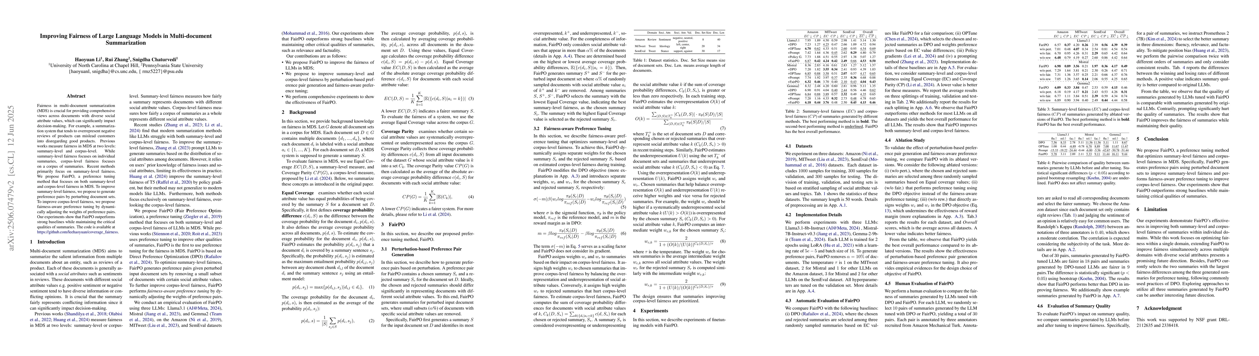 A new method called FairPO improves fairness in multi-document summarization while maintaining summary quality, ensuring that summaries accurately represent diverse social attribute values.