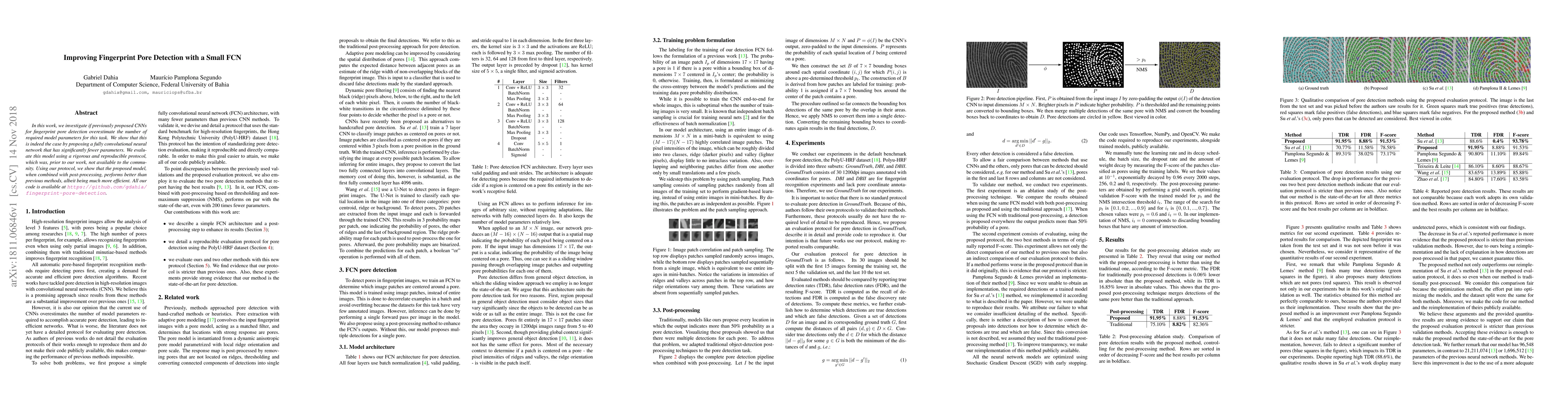 In this work, we investigate if previously proposed CNNs for fingerprint pore detection overestimate the number of required model parameters for this task. We show that this is indeed the case by proposing a fully convolutional neural network that has significantly fewer parameters. We evaluate this model using a rigorous and reproducible protocol, which was, prior to our work, not available to the community. Using our protocol, we show that the proposed model, when combined with post-processing, performs better than previous methods, albeit being much more efficient. All our code is available at https://github.com/gdahia/fingerprint-pore-detection
