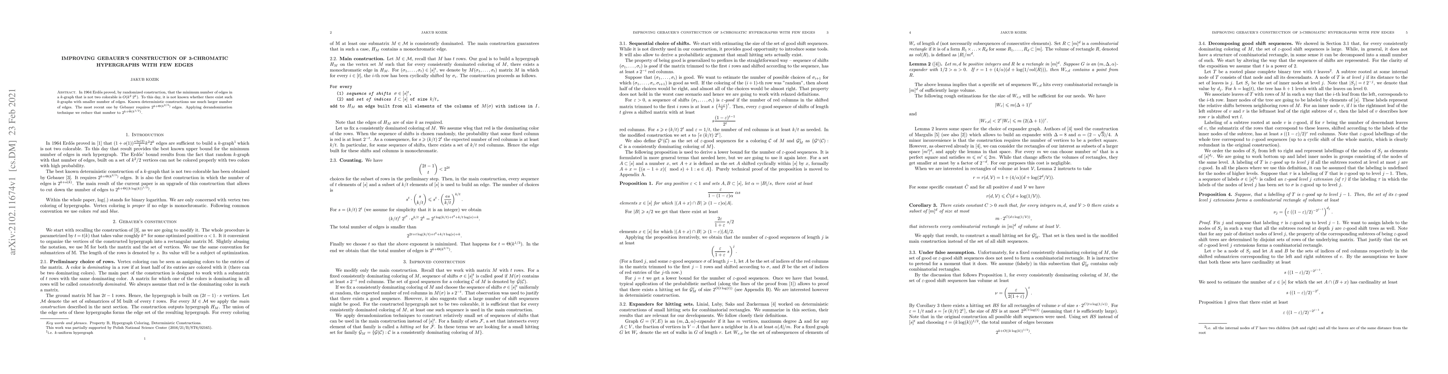 This paper presents a derandomized construction technique that improves Gebauer's method for creating 3-chromatic hypergraphs, reducing the number of edges required from $2^{k+\Theta(k^{2/3})}$ to $2^{k+\widetilde{\Theta}(k^{1/2})}$. This advancement brings the construction closer to the theoretical minimum established by Erdős.