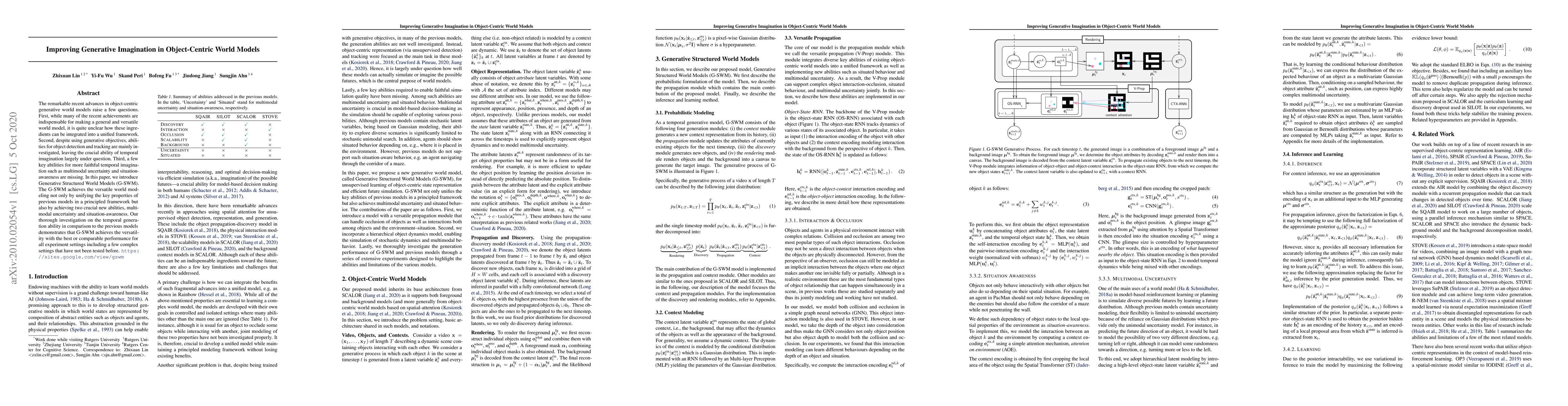 This paper introduces Generative Structured World Models (G-SWM) to unify key properties of previous object-centric generative models and enhance temporal imagination through multimodal uncertainty and situation-awareness, achieving versatile world modeling with competitive performance across various complex scenarios.