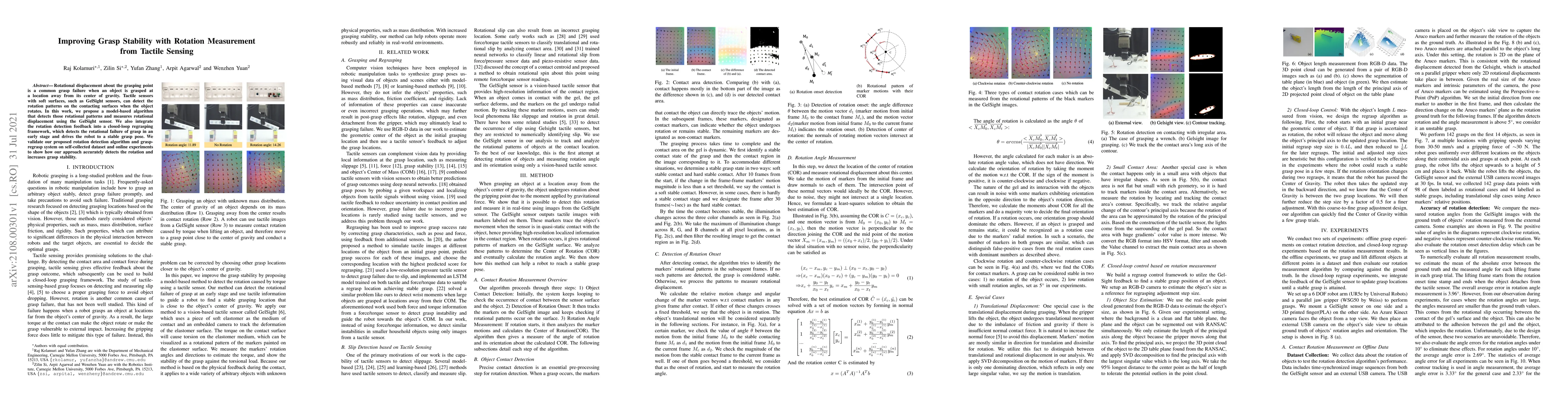 This paper proposes a model-based algorithm using GelSight tactile sensors to detect rotational displacement during grasp, which is a common failure mode. The method integrates this feedback into a regrasping framework to enhance grasp stability, validated through self-collected data and online experiments.