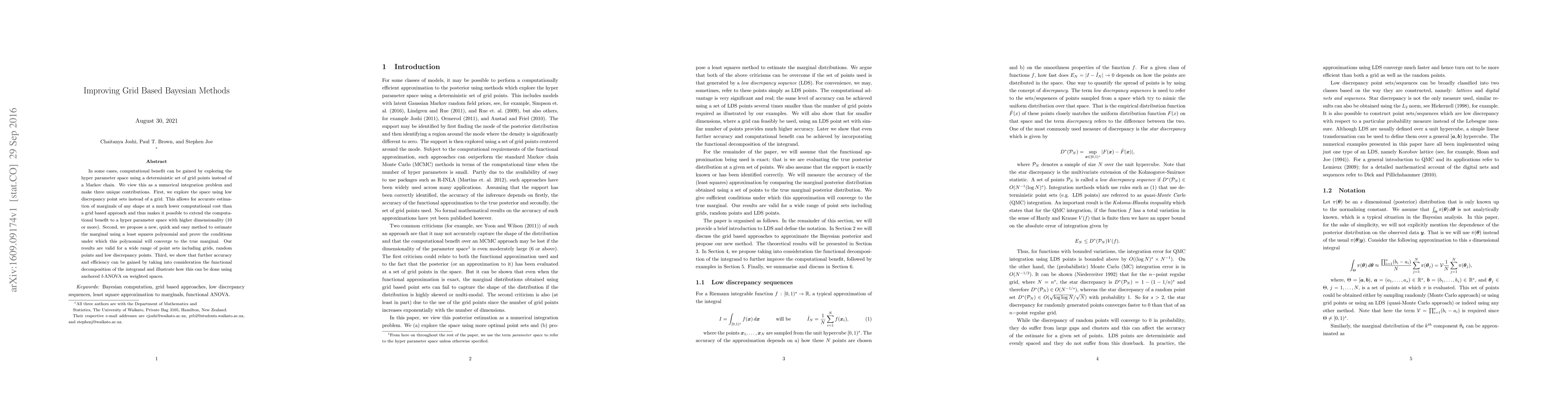 In some cases, computational benefit can be gained by exploring the hyper parameter space using a deterministic set of grid points instead of a Markov chain. We view this as a numerical integration problem and make three unique contributions. First, we explore the space using low discrepancy point sets instead of a grid. This allows for accurate estimation of marginals of any shape at a much lower computational cost than a grid based approach and thus makes it possible to extend the computational benefit to a hyper parameter space with higher dimensionality (10 or more). Second, we propose a new, quick and easy method to estimate the marginal using a least squares polynomial and prove the conditions under which this polynomial will converge to the true marginal. Our results are valid for a wide range of point sets including grids, random points and low discrepancy points. Third, we show that further accuracy and efficiency can be gained by taking into consideration the functional decomposition of the integrand and illustrate how this can be done using anchored f-ANOVA on weighted spaces.