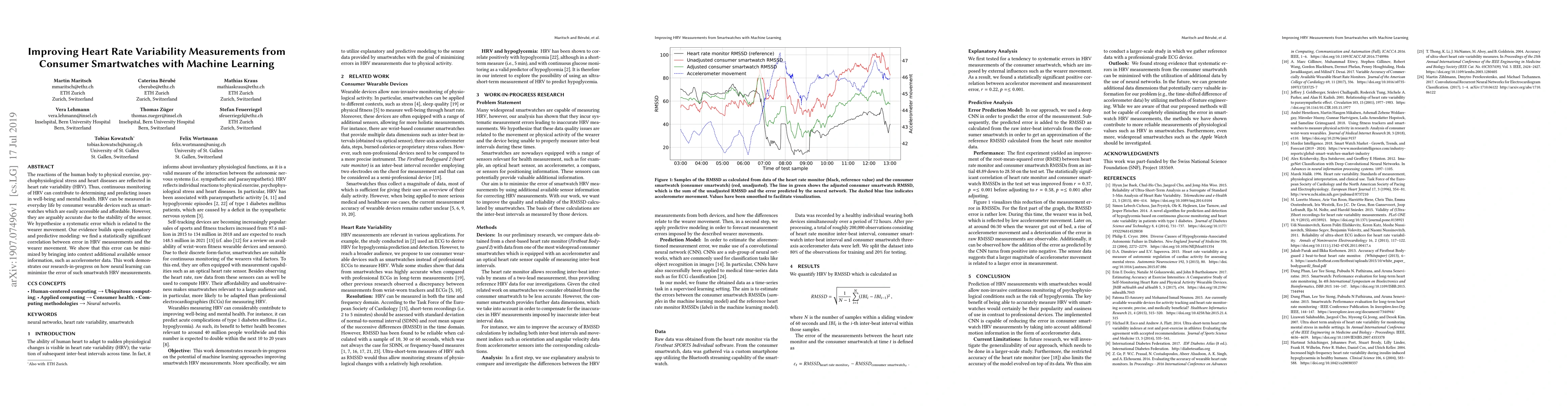 The reactions of the human body to physical exercise, psychophysiological stress and heart diseases are reflected in heart rate variability (HRV). Thus, continuous monitoring of HRV can contribute to determining and predicting issues in well-being and mental health. HRV can be measured in everyday life by consumer wearable devices such as smartwatches which are easily accessible and affordable. However, they are arguably accurate due to the stability of the sensor. We hypothesize a systematic error which is related to the wearer movement. Our evidence builds upon explanatory and predictive modeling: we find a statistically significant correlation between error in HRV measurements and the wearer movement. We show that this error can be minimized by bringing into context additional available sensor information, such as accelerometer data. This work demonstrates our research-in-progress on how neural learning can minimize the error of such smartwatch HRV measurements.