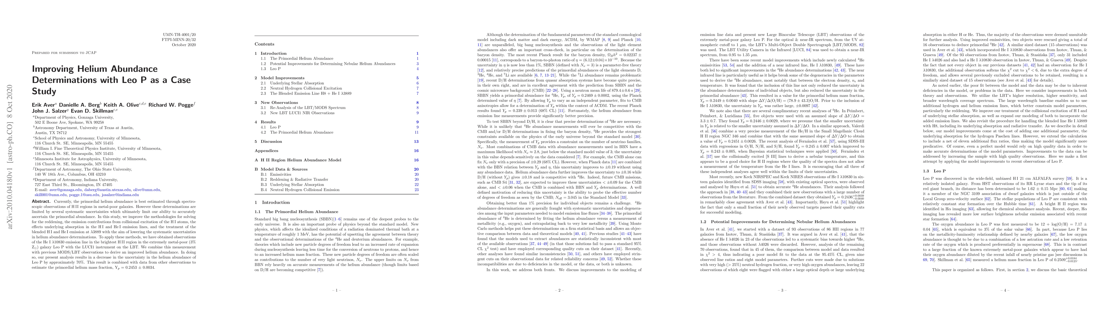 This study refines methodologies for determining primordial helium abundance by reducing systematic uncertainties in spectroscopic observations of H II regions, particularly in the metal-poor galaxy Leo P. The new analysis lowers the helium abundance uncertainty by 70%, leading to a revised primordial helium mass fraction estimate of Y$_{p}$ $=$ 0.2453 $\pm$ 0.0034.
