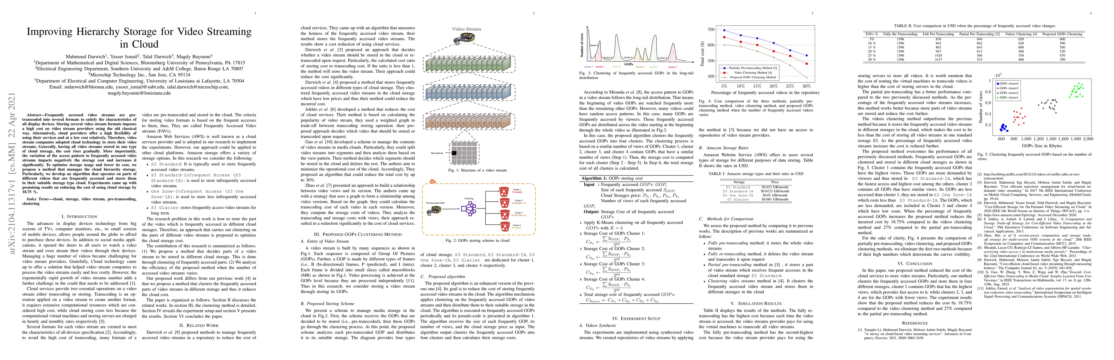 This paper proposes an algorithm to optimize cloud storage for frequently accessed video streams by categorizing and storing different parts of videos in the most cost-effective cloud storage type, achieving a 18.75% reduction in storage costs.