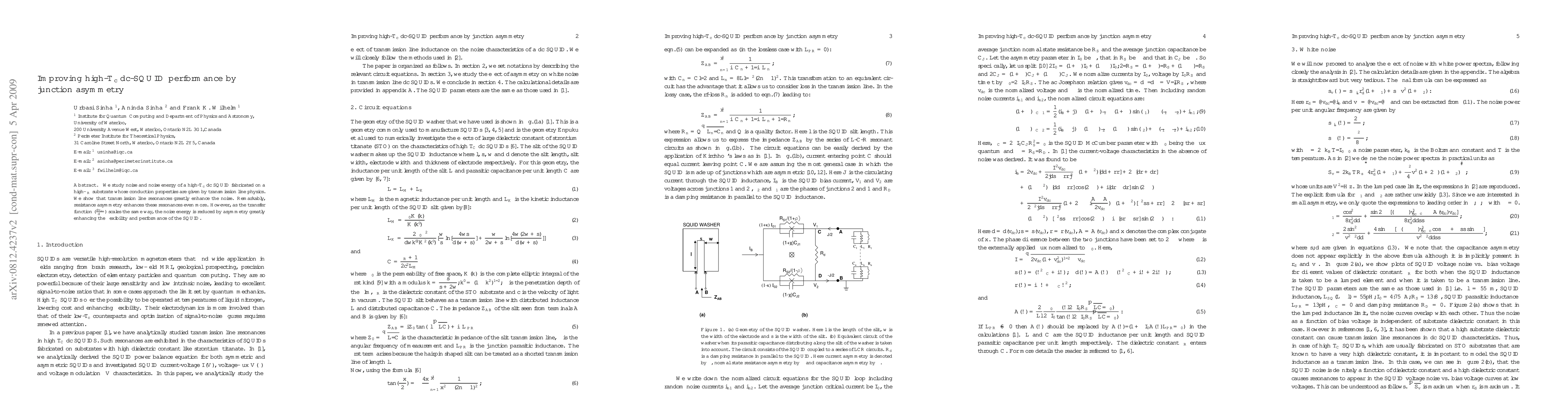This research investigates how asymmetry in resistance affects the noise and performance of high-T$_c$ dc SQUIDs on high-$\epsilon_R$ substrates, finding that while asymmetry increases noise, it significantly reduces noise energy, thereby enhancing the SQUID's flexibility and overall performance.