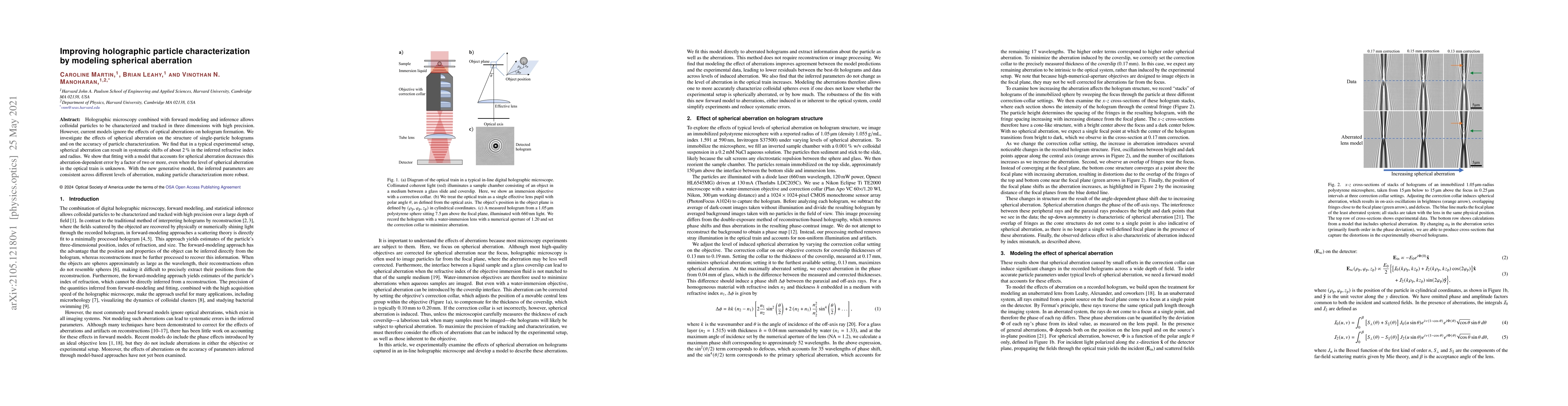 This paper investigates the effects of spherical aberration on holographic particle characterization, finding that it can cause systematic errors in inferred refractive index and radius. By incorporating spherical aberration into the modeling process, the researchers significantly reduce these errors, enhancing the robustness of particle characterization.