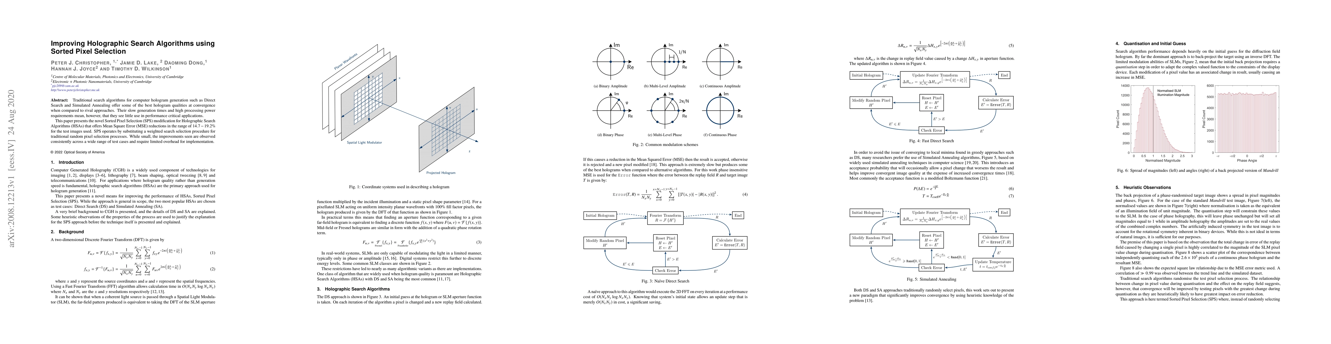 A new algorithm called Sorted Pixel Selection improves holographic search algorithms, reducing Mean Square Error by 14.7-19.2% with minimal implementation overhead.