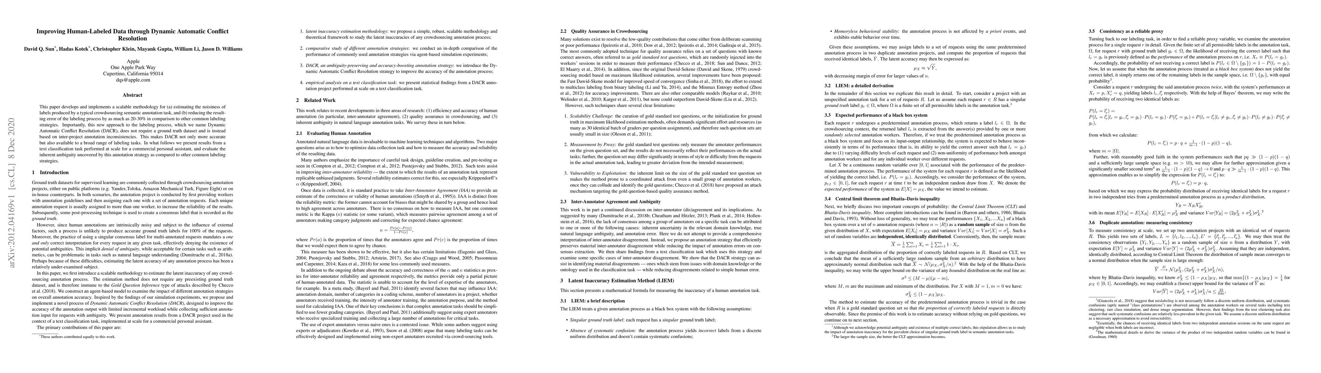 This paper develops and implements a scalable methodology for (a) estimating the noisiness of labels produced by a typical crowdsourcing semantic annotation task, and (b) reducing the resulting error of the labeling process by as much as 20-30% in comparison to other common labeling strategies. Importantly, this new approach to the labeling process, which we name Dynamic Automatic Conflict Resolution (DACR), does not require a ground truth dataset and is instead based on inter-project annotation inconsistencies. This makes DACR not only more accurate but also available to a broad range of labeling tasks. In what follows we present results from a text classification task performed at scale for a commercial personal assistant, and evaluate the inherent ambiguity uncovered by this annotation strategy as compared to other common labeling strategies.