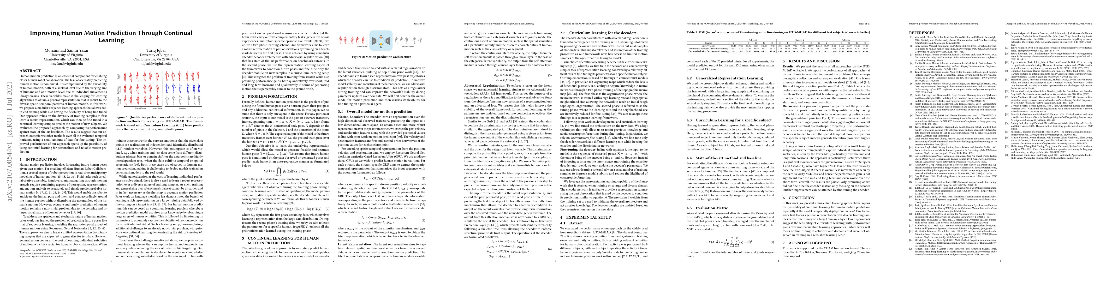 Human motion prediction is an essential component for enabling closer human-robot collaboration. The task of accurately predicting human motion is non-trivial. It is compounded by the variability of human motion, both at a skeletal level due to the varying size of humans and at a motion level due to individual movement's idiosyncrasies. These variables make it challenging for learning algorithms to obtain a general representation that is robust to the diverse spatio-temporal patterns of human motion. In this work, we propose a modular sequence learning approach that allows end-to-end training while also having the flexibility of being fine-tuned. Our approach relies on the diversity of training samples to first learn a robust representation, which can then be fine-tuned in a continual learning setup to predict the motion of new subjects. We evaluated the proposed approach by comparing its performance against state-of-the-art baselines. The results suggest that our approach outperforms other methods over all the evaluated temporal horizons, using a small amount of data for fine-tuning. The improved performance of our approach opens up the possibility of using continual learning for personalized and reliable motion prediction.