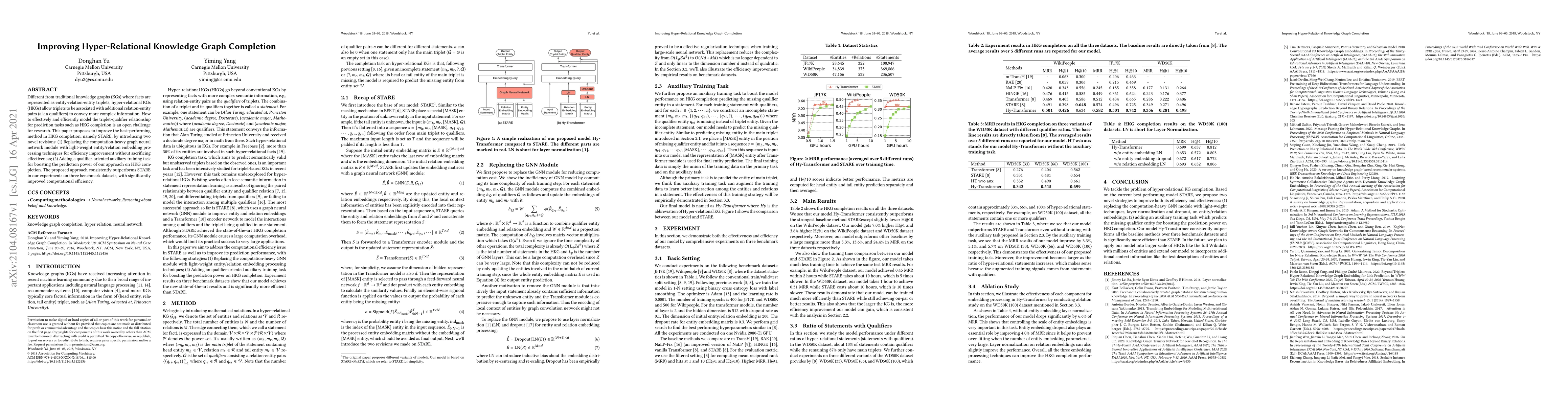 This paper enhances the STARE method for hyper-relational knowledge graph completion by replacing its graph neural network with more efficient embedding techniques and introducing a qualifier-oriented auxiliary training task, achieving better performance and computational efficiency on benchmark datasets.