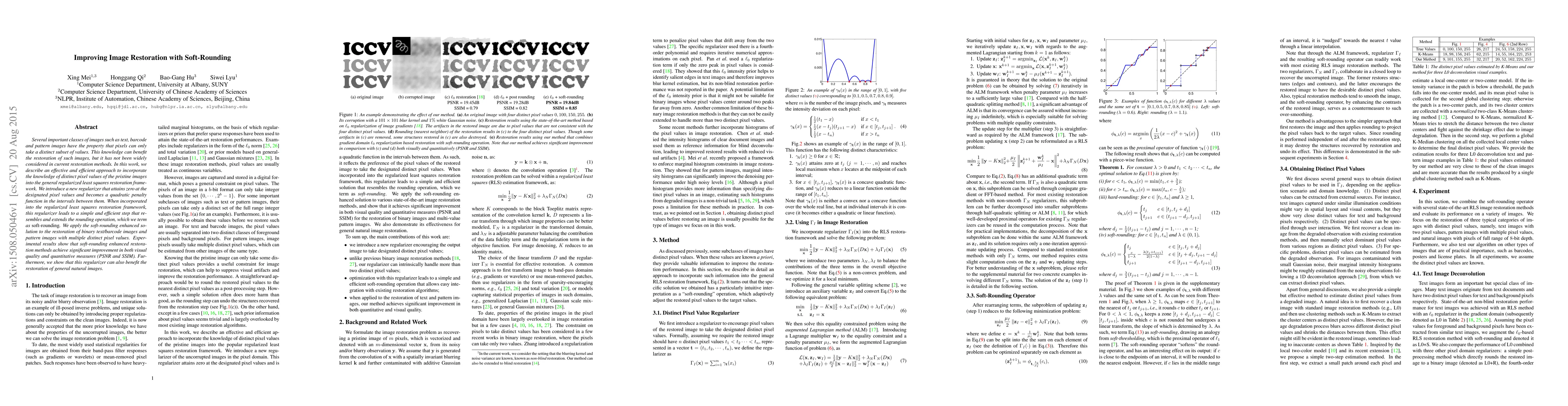 Several important classes of images such as text, barcode and pattern images have the property that pixels can only take a distinct subset of values. This knowledge can benefit the restoration of such images, but it has not been widely considered in current restoration methods. In this work, we describe an effective and efficient approach to incorporate the knowledge of distinct pixel values of the pristine images into the general regularized least squares restoration framework. We introduce a new regularizer that attains zero at the designated pixel values and becomes a quadratic penalty function in the intervals between them. When incorporated into the regularized least squares restoration framework, this regularizer leads to a simple and efficient step that resembles and extends the rounding operation, which we term as soft-rounding. We apply the soft-rounding enhanced solution to the restoration of binary text/barcode images and pattern images with multiple distinct pixel values. Experimental results show that soft-rounding enhanced restoration methods achieve significant improvement in both visual quality and quantitative measures (PSNR and SSIM). Furthermore, we show that this regularizer can also benefit the restoration of general natural images.