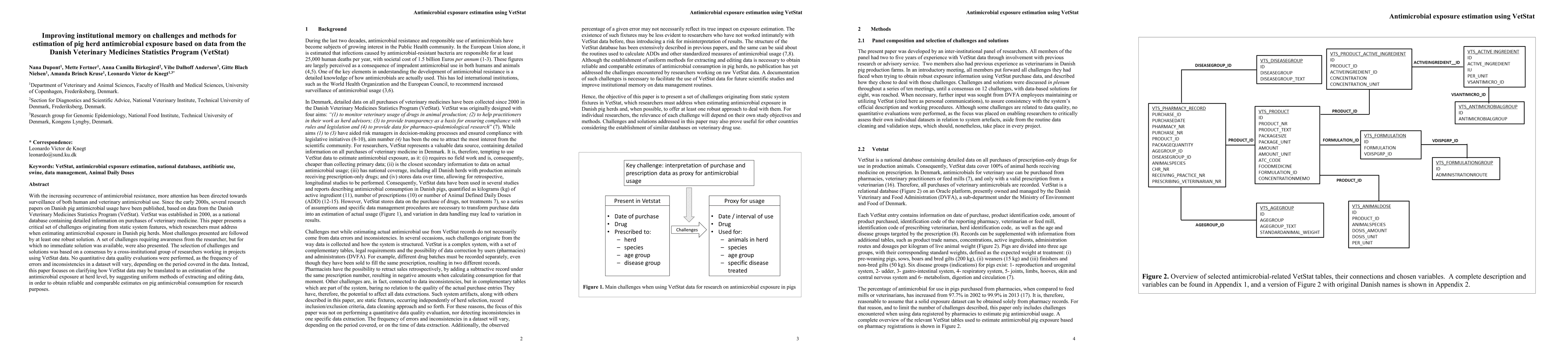 With the increasing occurrence of antimicrobial resistance, more attention has been directed towards surveillance of both human and veterinary antimicrobial use. Since the early 2000s, several research papers on Danish pig antimicrobial usage have been published, based on data from the Danish Veterinary Medicines Statistics Program (VetStat). VetStat was established in 2000, as a national database containing detailed information on purchases of veterinary medicine. This paper presents a critical set of challenges originating from static system features, which researchers must address when estimating antimicrobial exposure in Danish pig herds. Most challenges presented are followed by at least one robust solution. A set of challenges requiring awareness from the researcher, but for which no immediate solution was available, were also presented. The selection of challenges and solutions was based on a consensus by a cross-institutional group of researchers working in projects using VetStat data. No quantitative data quality evaluations were performed, as the frequency of errors and inconsistencies in a dataset will vary, depending on the period covered in the data. Instead, this paper focuses on clarifying how VetStat data may be translated to an estimation of the antimicrobial exposure at herd level, by suggesting uniform methods of extracting and editing data, in order to obtain reliable and comparable estimates on pig antimicrobial consumption for research purposes.