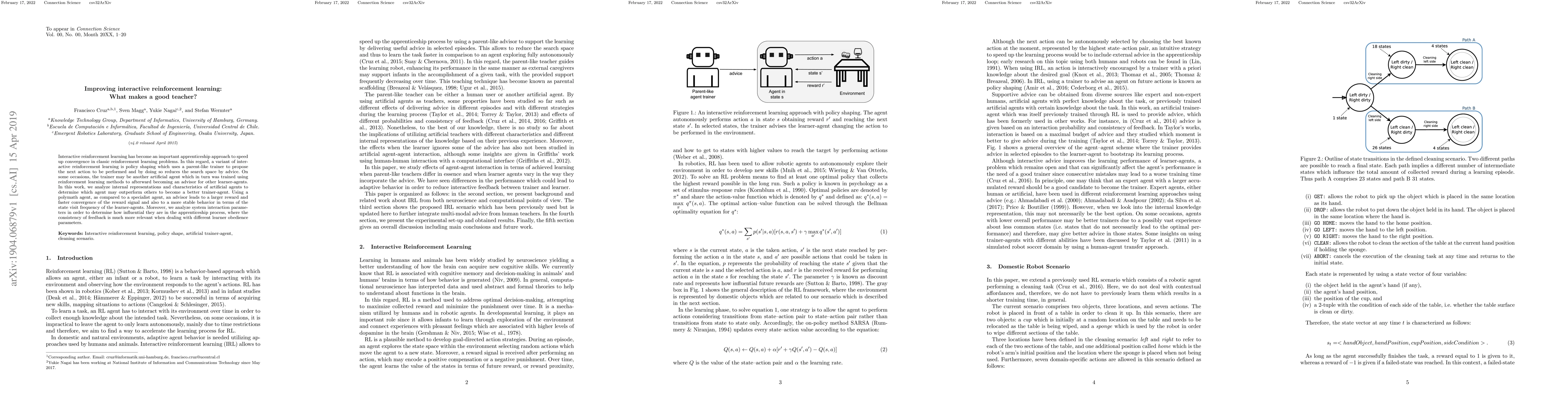 Interactive reinforcement learning has become an important apprenticeship approach to speed up convergence in classic reinforcement learning problems. In this regard, a variant of interactive reinforcement learning is policy shaping which uses a parent-like trainer to propose the next action to be performed and by doing so reduces the search space by advice. On some occasions, the trainer may be another artificial agent which in turn was trained using reinforcement learning methods to afterward becoming an advisor for other learner-agents. In this work, we analyze internal representations and characteristics of artificial agents to determine which agent may outperform others to become a better trainer-agent. Using a polymath agent, as compared to a specialist agent, an advisor leads to a larger reward and faster convergence of the reward signal and also to a more stable behavior in terms of the state visit frequency of the learner-agents. Moreover, we analyze system interaction parameters in order to determine how influential they are in the apprenticeship process, where the consistency of feedback is much more relevant when dealing with different learner obedience parameters.