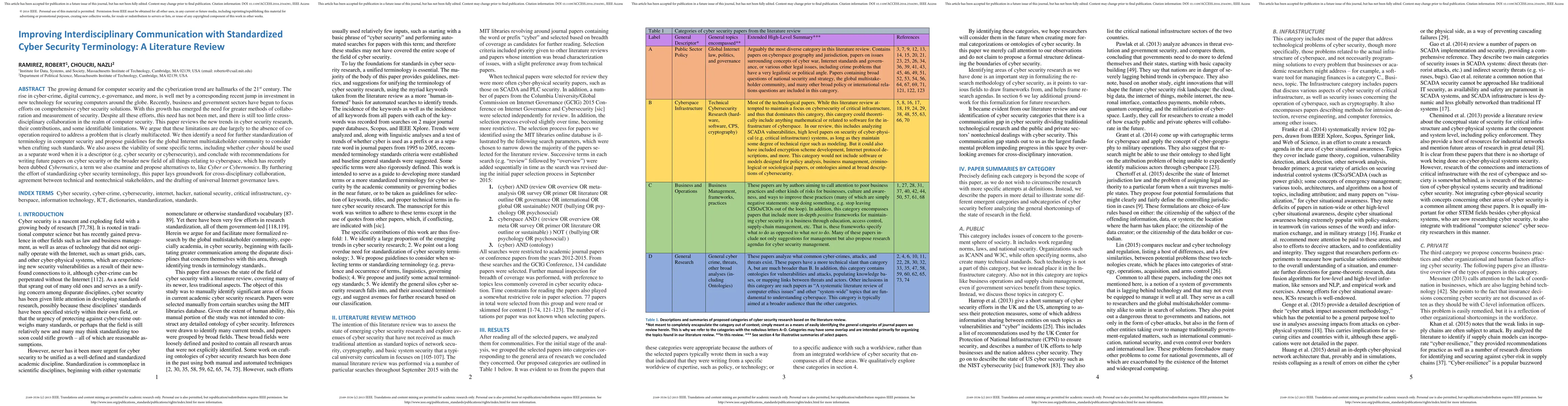 The growing demand for computer security and the cyberization trend are hallmarks of the 21st century. The rise in cyber-crime, digital currency, e-governance, and more, is well met by a corresponding recent jump in investment in new technology for securing computers around the globe. Recently, business and government sectors have begun to focus efforts on comprehensive cyber security solutions. With this growth has emerged the need for greater methods of collabo-ration and measurement of security. Despite all these efforts, this need has not been met, and there is still too little cross-disciplinary collaboration in the realm of computer security. This paper reviews the new trends in cyber security research, their contributions, and some identifiable limitations. We argue that these limitations are due largely to the absence of co-operation required to address a problem that is clearly multifaceted. We then identify a need for further standardization of terminology in computer security and propose guidelines for the global Internet multistakeholder community to consider when crafting such standards. We also assess the viability of some specific terms, including whether cyber should be used as a separate word when it is a descriptor (e.g. cyber security or cybersecurity), and conclude with recommendations for writing future papers on cyber security or the broader new field of all things relating to cyberspace, which has recently been dubbed Cybermatics, a term we also examine and propose alternatives to, like Cyber or Cybernomics. By furthering the effort of standardizing cyber security terminology, this paper lays groundwork for cross-disciplinary collaboration, agreement between technical and nontechnical stakeholders, and the drafting of universal Internet governance laws.