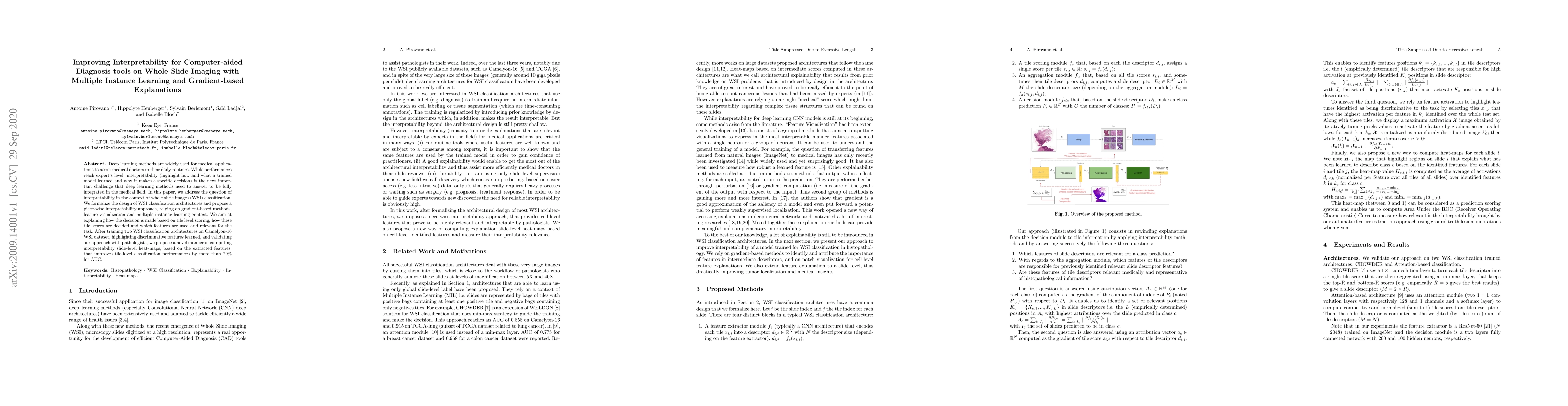 A new approach to improve interpretability in computer-aided diagnosis tools for whole slide images classification, achieving a 29% increase in performance through gradient-based explanations and feature visualization.