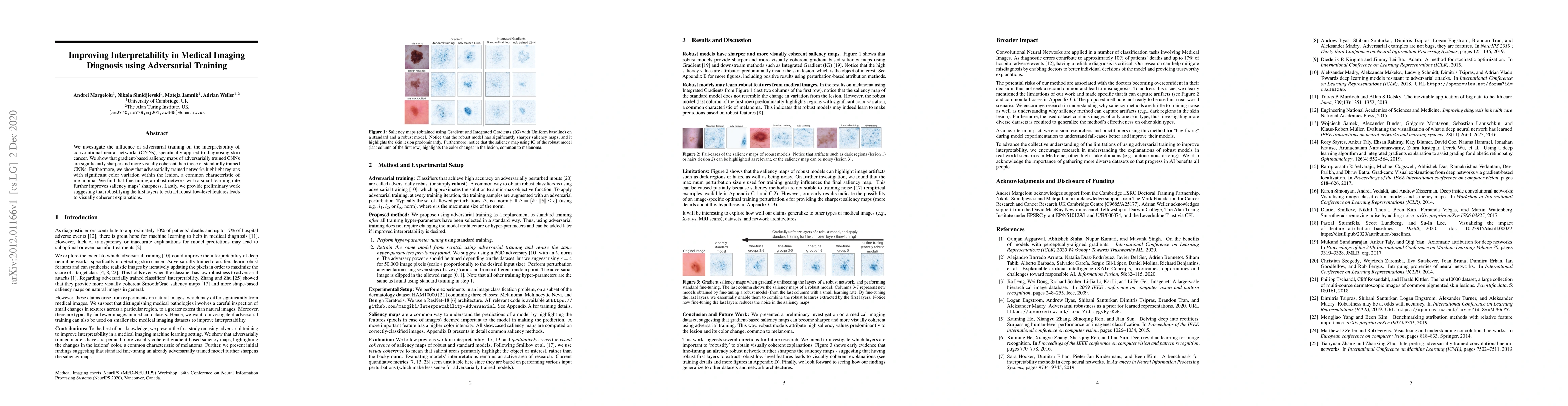 This paper explores how adversarial training enhances the interpretability of CNNs in skin cancer diagnosis, demonstrating sharper and more coherent saliency maps compared to standard training. It also shows that adversarial training highlights melanoma-specific features and suggests fine-tuning and robust feature extraction improve saliency map clarity.