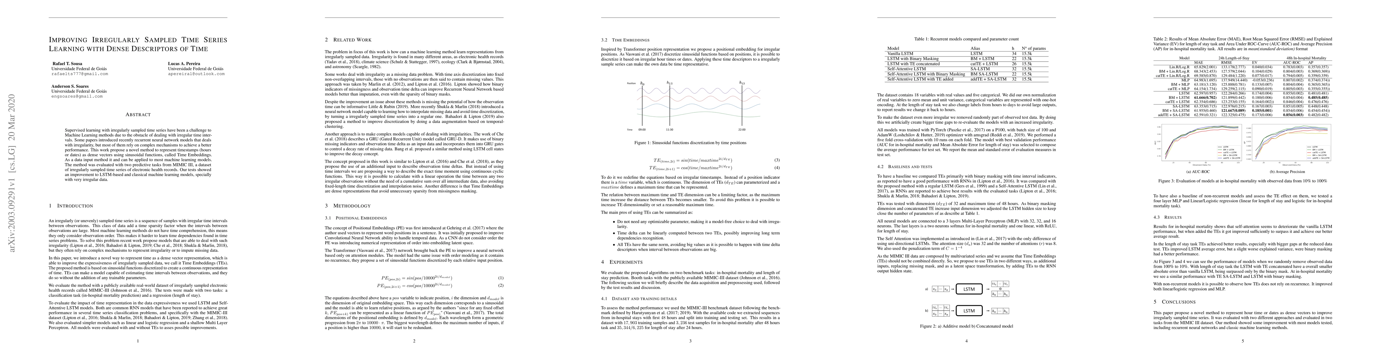 This paper proposes a novel method to represent timestamps as dense vectors using sinusoidal functions, called Time Embeddings, to improve supervised learning with irregularly sampled time series. The method was tested on MIMIC III data, showing improved performance for LSTM-based and classical machine learning models, especially with highly irregular data.