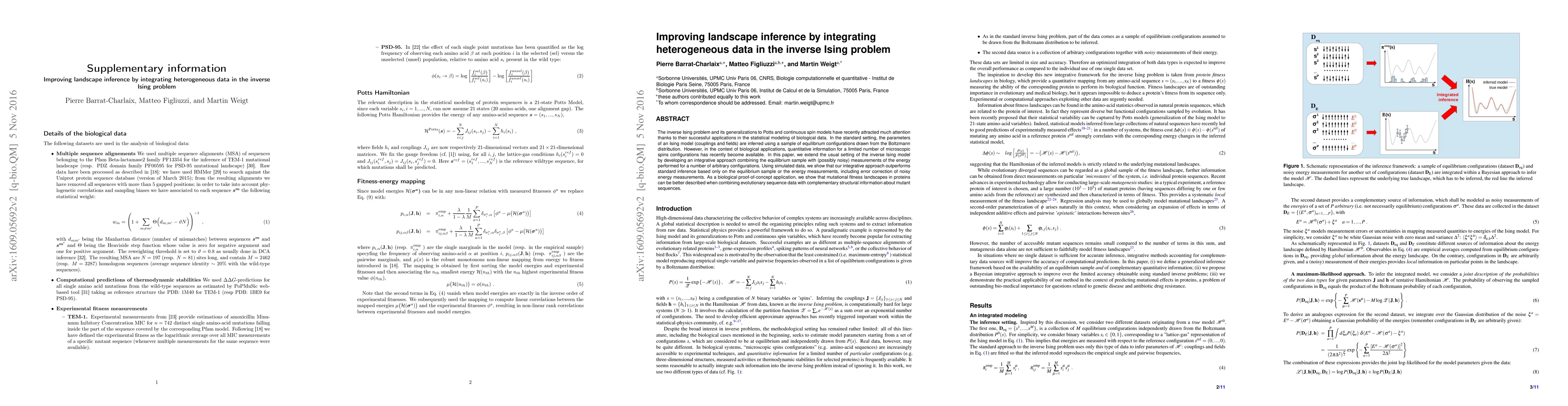 This paper proposes an integrative approach to the inverse Ising problem that combines equilibrium samples with additional energy measurements to improve landscape inference. The method outperforms traditional inference methods and demonstrates enhanced description of mutational fitness landscapes in proteins when evolutionary and structural data are combined.
