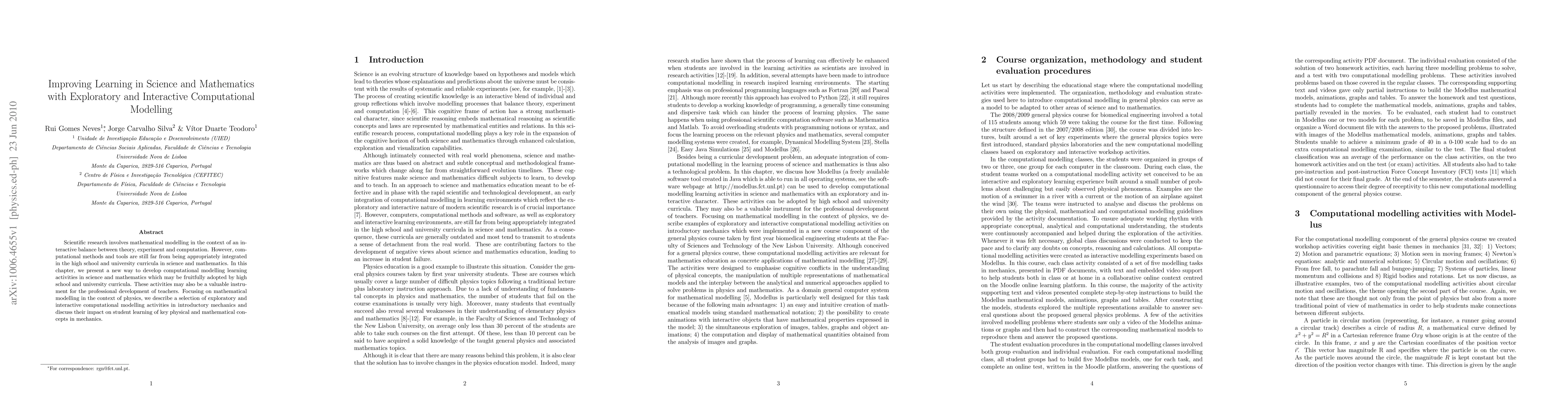 This paper proposes integrating exploratory and interactive computational modelling in science and mathematics curricula to enhance learning. It highlights the benefits of these activities in improving student understanding of key concepts in introductory mechanics and suggests they can also aid teacher professional development.