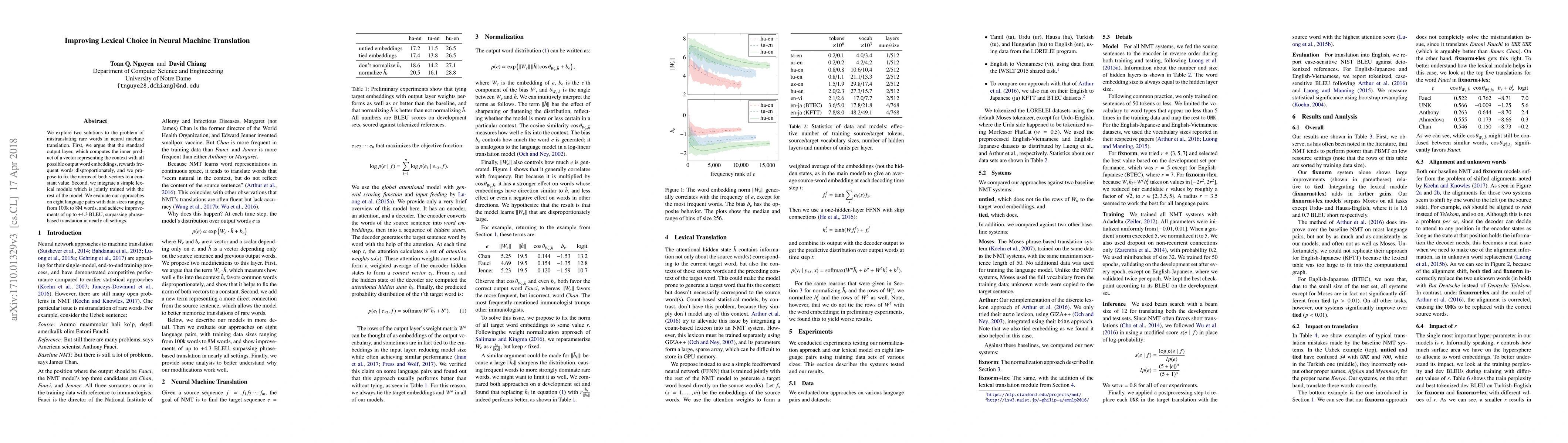 This paper proposes two methods to enhance the translation of rare words in neural machine translation: normalizing vector norms and integrating a jointly trained lexical module. Evaluations across diverse language pairs show up to a +4.3 BLEU score improvement, outperforming phrase-based translation.