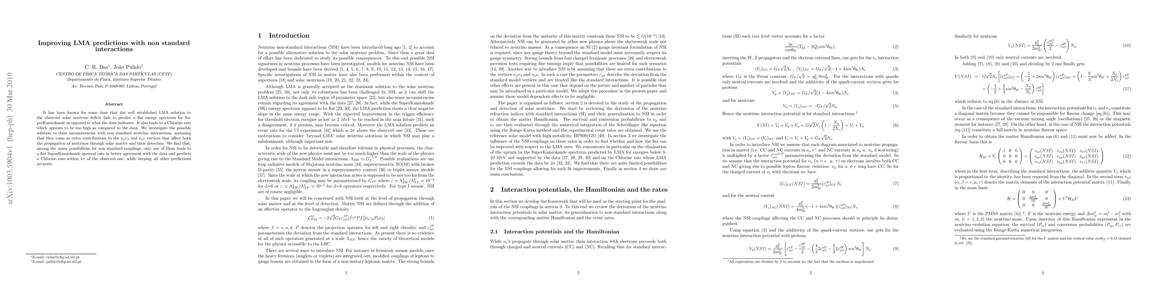 This paper explores how non-standard neutrino interactions can resolve discrepancies in the LMA solution for solar neutrino deficit, achieving a flat energy spectrum for SuperKamiokande and a Chlorine rate closer to observed data, while maintaining other predictions.