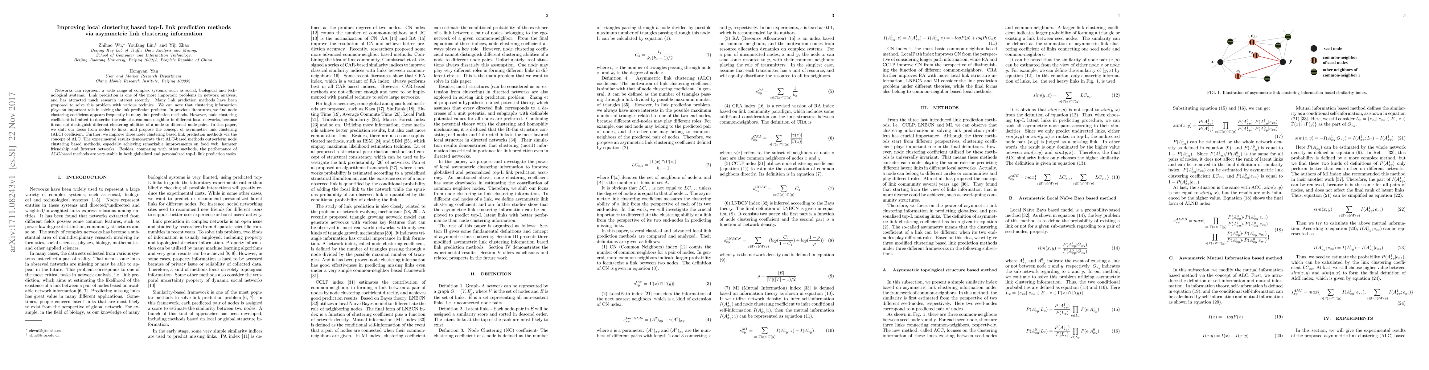 This paper introduces the concept of asymmetric link clustering (ALC) coefficient to improve local clustering based top-L link prediction methods. ALC-based methods outperform traditional node clustering based methods, showing significant improvements across various networks and demonstrating stable performance in both globalized and personalized link prediction tasks.