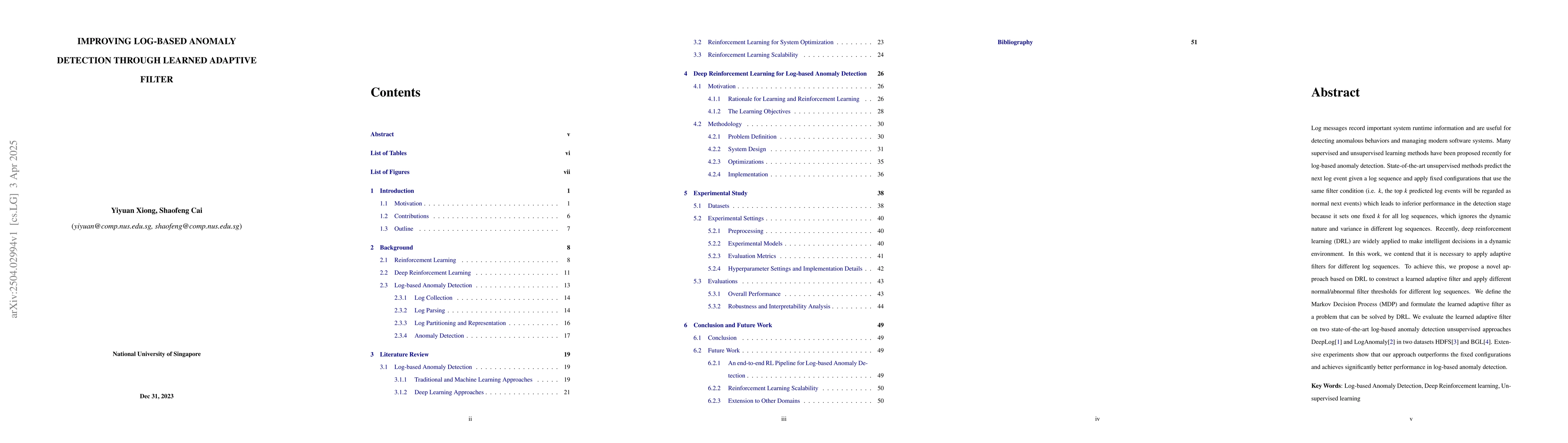 This research paper proposes a novel approach using deep reinforcement learning to create an adaptive filter for log-based anomaly detection, achieving better performance than existing methods.