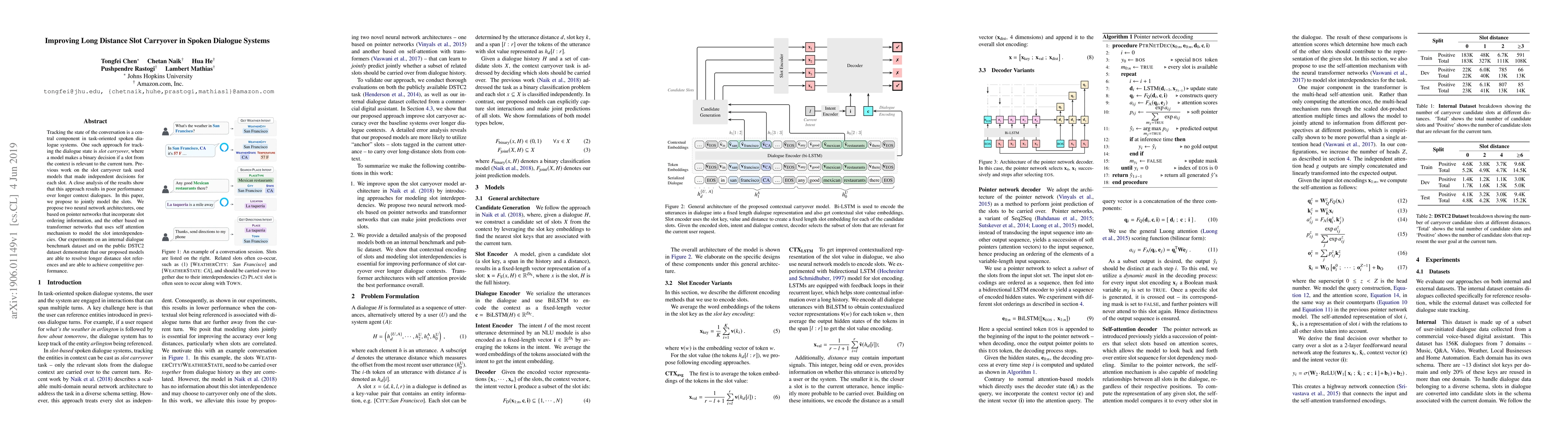 Tracking the state of the conversation is a central component in task-oriented spoken dialogue systems. One such approach for tracking the dialogue state is slot carryover, where a model makes a binary decision if a slot from the context is relevant to the current turn. Previous work on the slot carryover task used models that made independent decisions for each slot. A close analysis of the results show that this approach results in poor performance over longer context dialogues. In this paper, we propose to jointly model the slots. We propose two neural network architectures, one based on pointer networks that incorporate slot ordering information, and the other based on transformer networks that uses self attention mechanism to model the slot interdependencies. Our experiments on an internal dialogue benchmark dataset and on the public DSTC2 dataset demonstrate that our proposed models are able to resolve longer distance slot references and are able to achieve competitive performance.