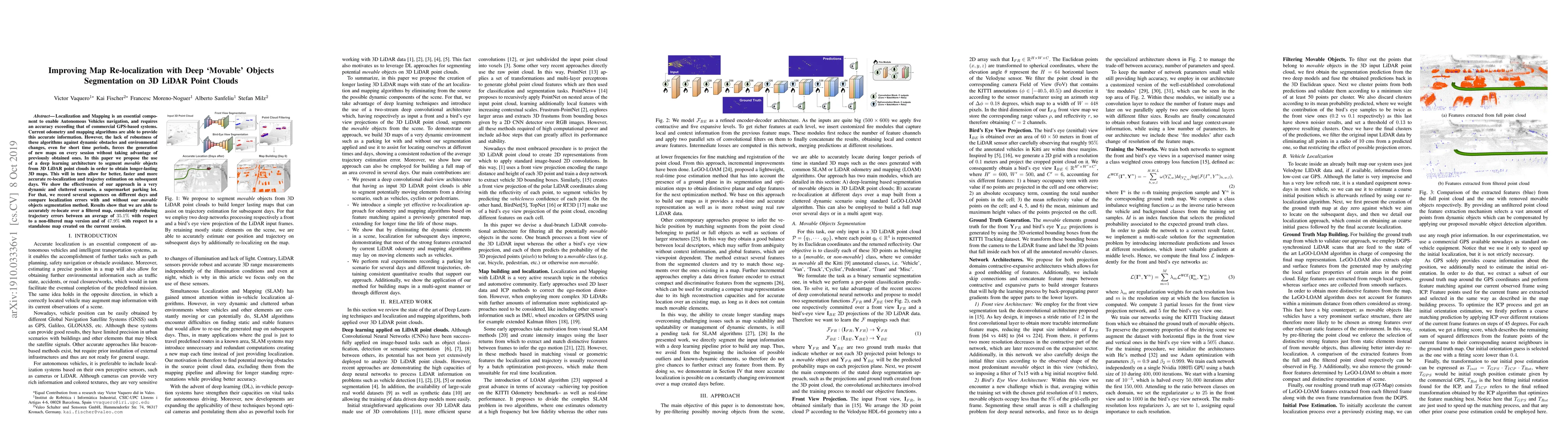 Researchers proposed a deep learning approach to segment movable objects from 3D LiDAR point clouds, improving map re-localization accuracy and reducing trajectory errors in dynamic environments.