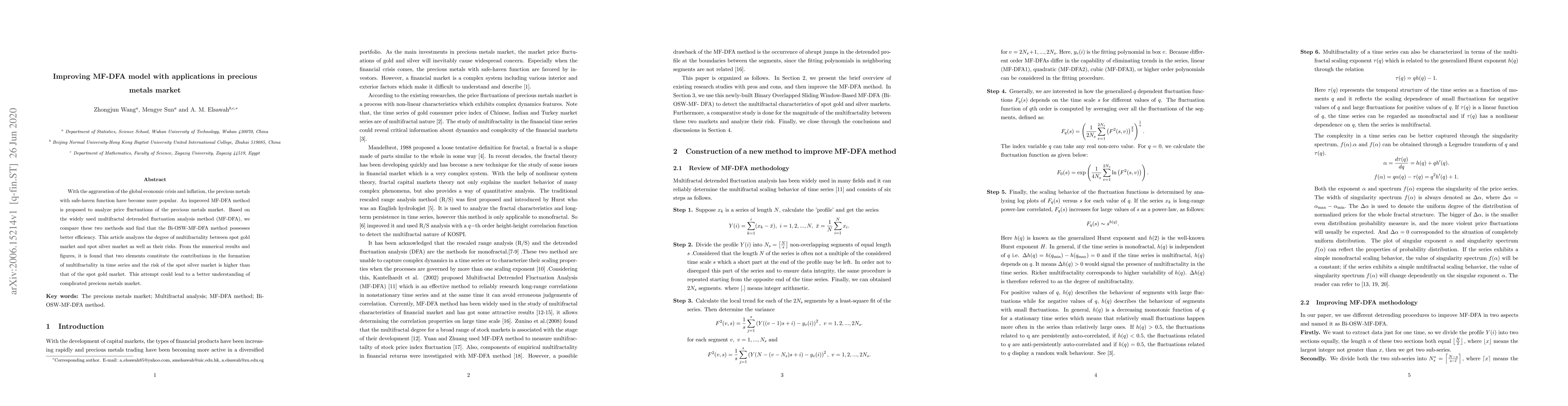 The paper proposes an improved Multifractal Detrended Fluctuation Analysis (MF-DFA) method, Bi-OSW-MF-DFA, to analyze precious metals market fluctuations. The study finds that both gold and silver markets show multifractality, but silver carries higher risk, enhancing understanding of complex precious metals market dynamics.
